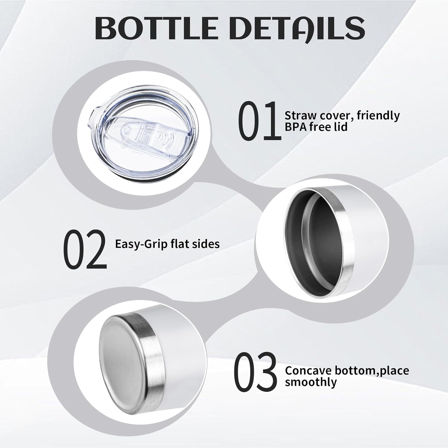 - BPA Free Lid: Stainless steel tumbler set with lid and an opening for drinking, be aware of how hot your coffee is before taking a sip. Under normal temperature, the insulated coffee cup keep your water hot for three hours and cold for nine hours
