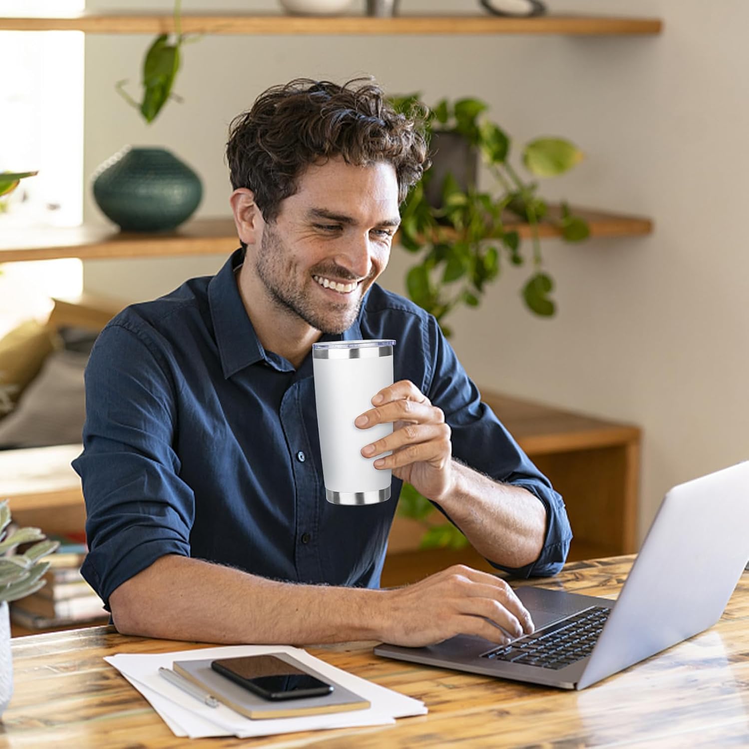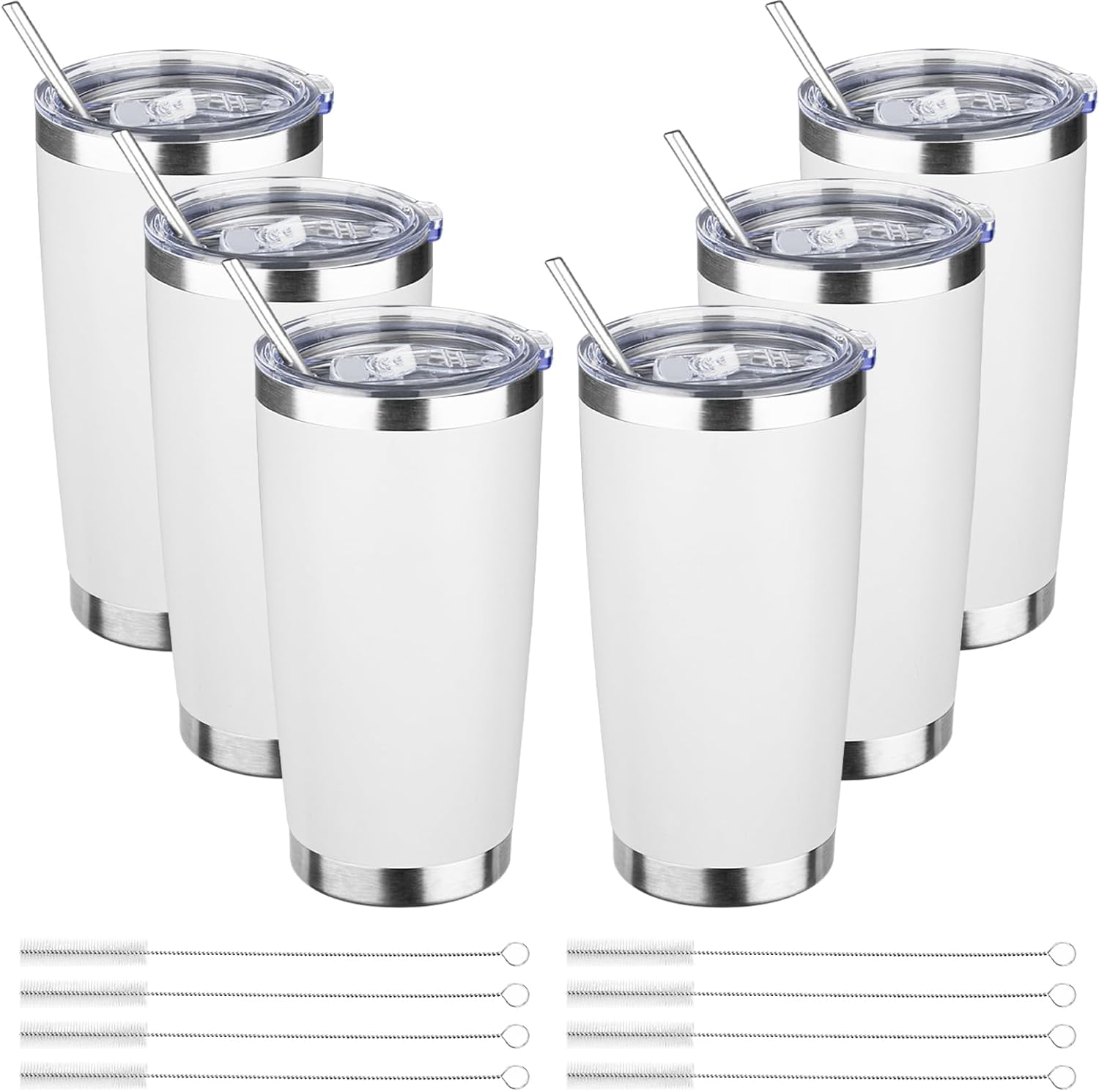 20oz Tumbler Bulk with Lid and Straw, Stainless Steel Double Wall Vacuum Insulated Travel Mug, Powder Coated Coffee Cups for Hot and Cold Drinks,Funny Gifts for Women Men(White,6)