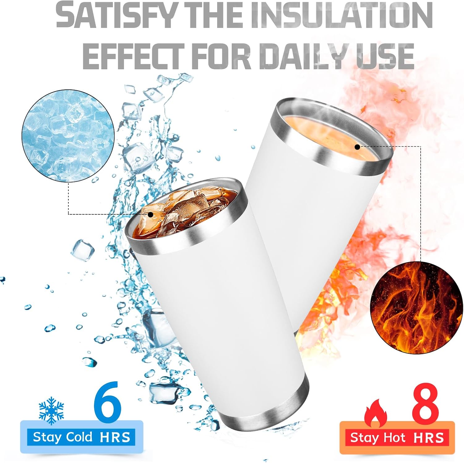 20oz Tumbler with Lid Double Wall Vacuum Insulated Travel Coffee Mug Stainless Steel Thermal Cup Powder Coated Sturdy Coffee Tumbler Bulk for Hot and Cold Beverage (White,6)