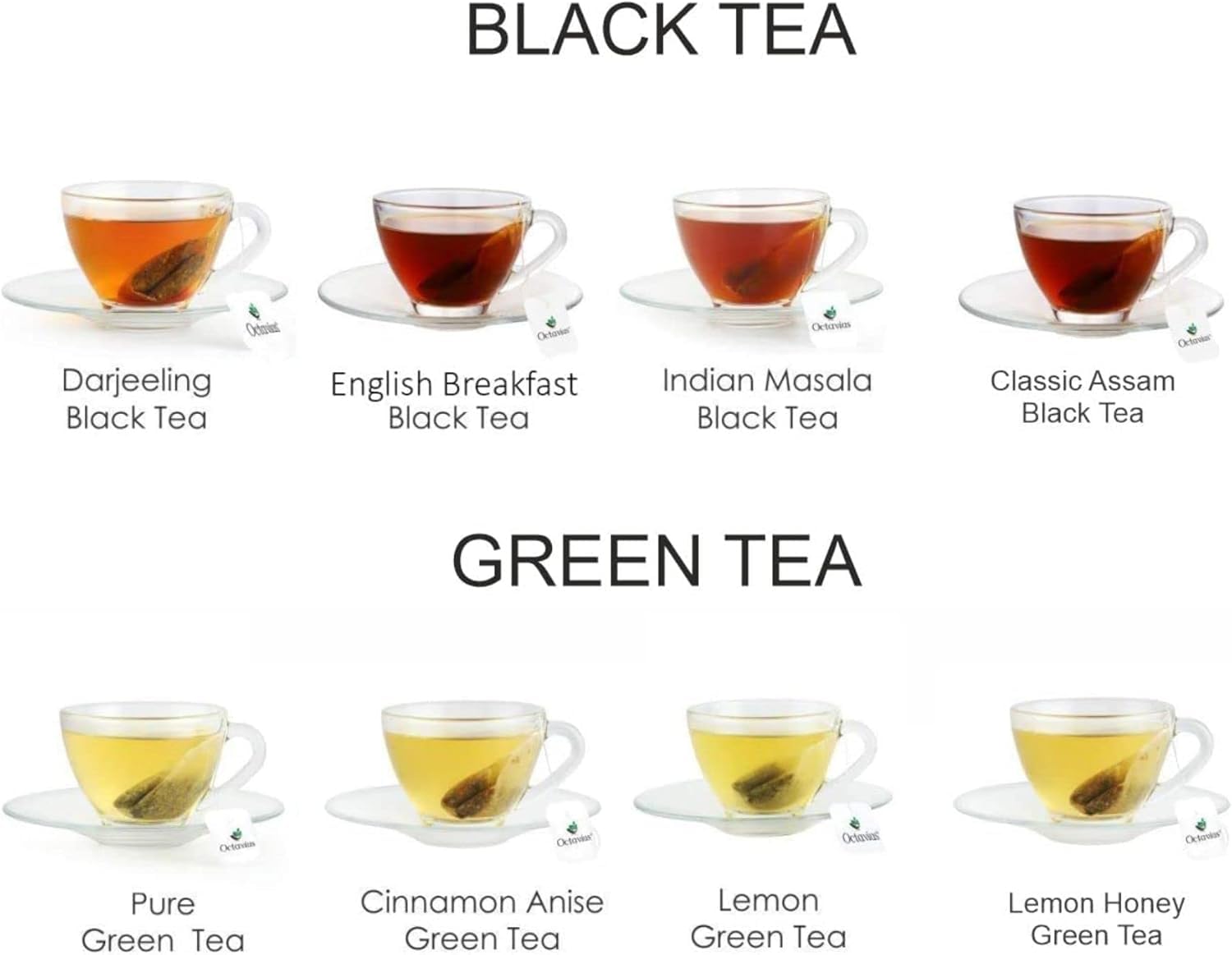- Flavor : Pure Green tea , Cinnamon Anise Green Tea, Lemon Green tea, English Breakfast, Classic Darjeeling, Indian Masala ChaiPure Green tea , Cinnamon Anise Green Tea, Lemon Green tea, English Breakfast, Classic Darjeeling, Indian Masala Chai See more