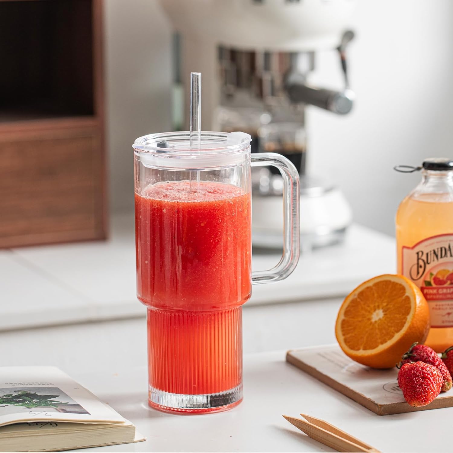 - 【Easy to Clean & Eco-Friendly】The dishwasher-safe glass ensures hassle-free cleaning, while the removable lid and wide opening allow for easy hand washing. The reusable plastic straw reduces waste, offering a sustainable, stylish alternative to disposable cups. Perfect for daily use and eco-conscious living.