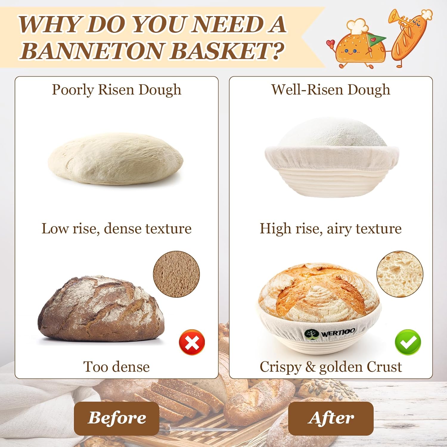 - Food-Safe & Easy to Clean: Designed for direct contact with food, this banneton is simple to maintain. After use, just shake out any leftover flour. If dough sticks, let it dry and brush away with a stiff brush. Always store in a dry, well-ventilated area. Includes a linen liner and cup brush for convenient cleaning.
