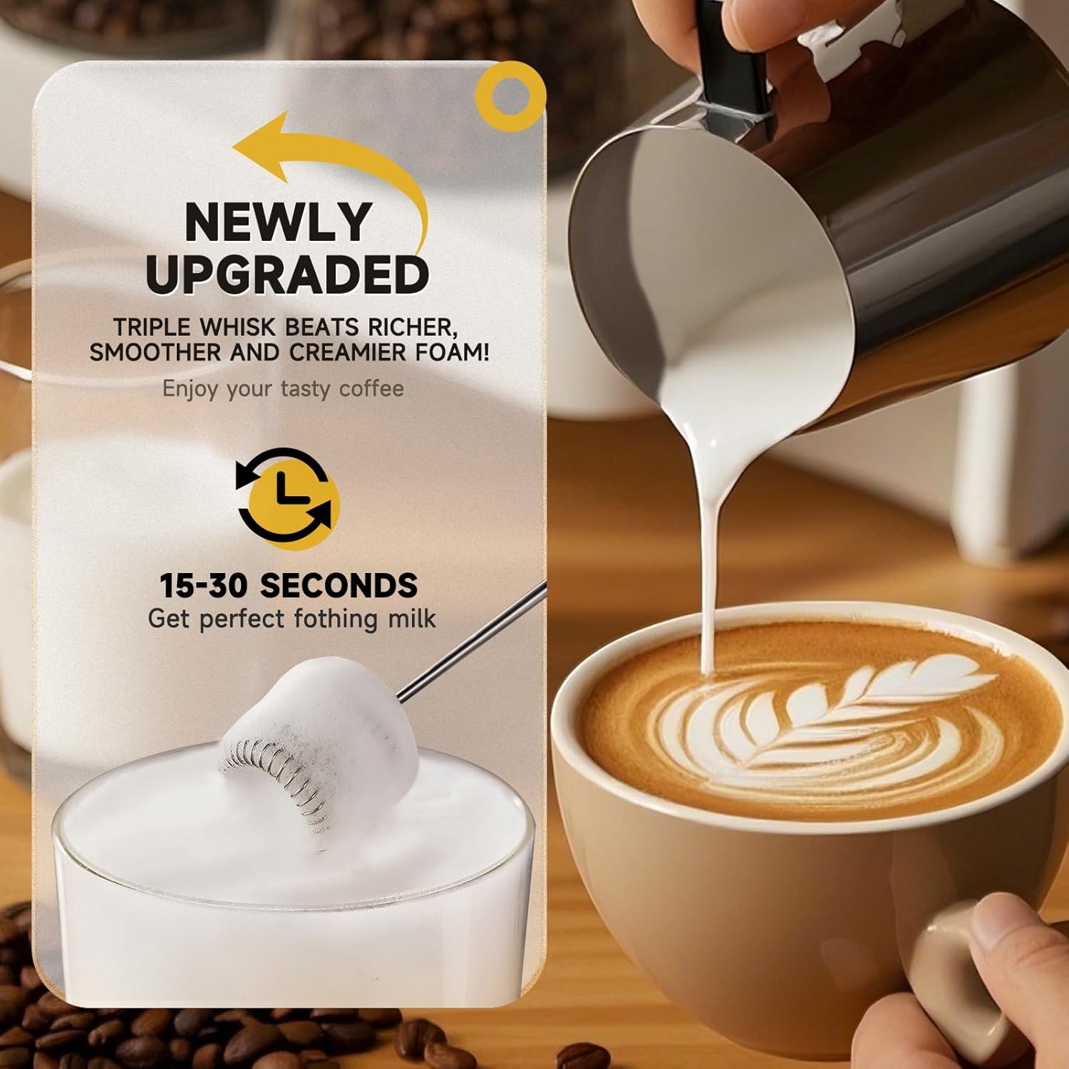 Electric Milk Frother Handheld, Triple-whisk 3-Speed Coffee Drink Mixer with 3 Stainless Steel Whisks (Including Triple-Spring Frothing Whisk) – Stand Included for Cappuccino, Latte, Egg Whisking