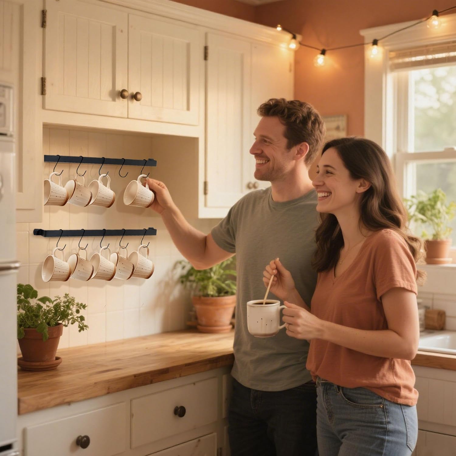 AJART Coffee Mug Rack Wall-Mounted: 12-Hook Cup Holder - Ideal for Coffee Bars & Apartment Kitchens - Space-Saving Solution - 1 Pack