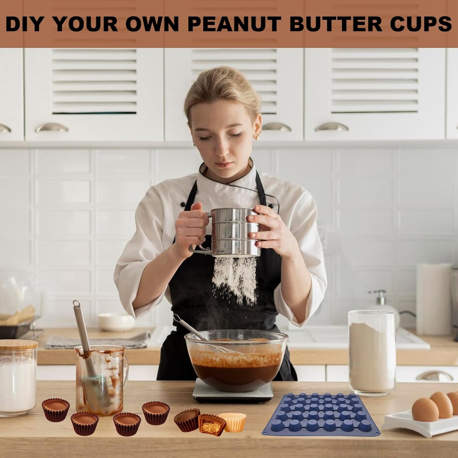 - Package includes 2 PCS total 60 cavities silicone peanut butter cup mold, the mold is flexible thus it is better to use together with a baking pan. Beside it is reusable, ideally could be reused for thousands times according to the actual usage, save your money!