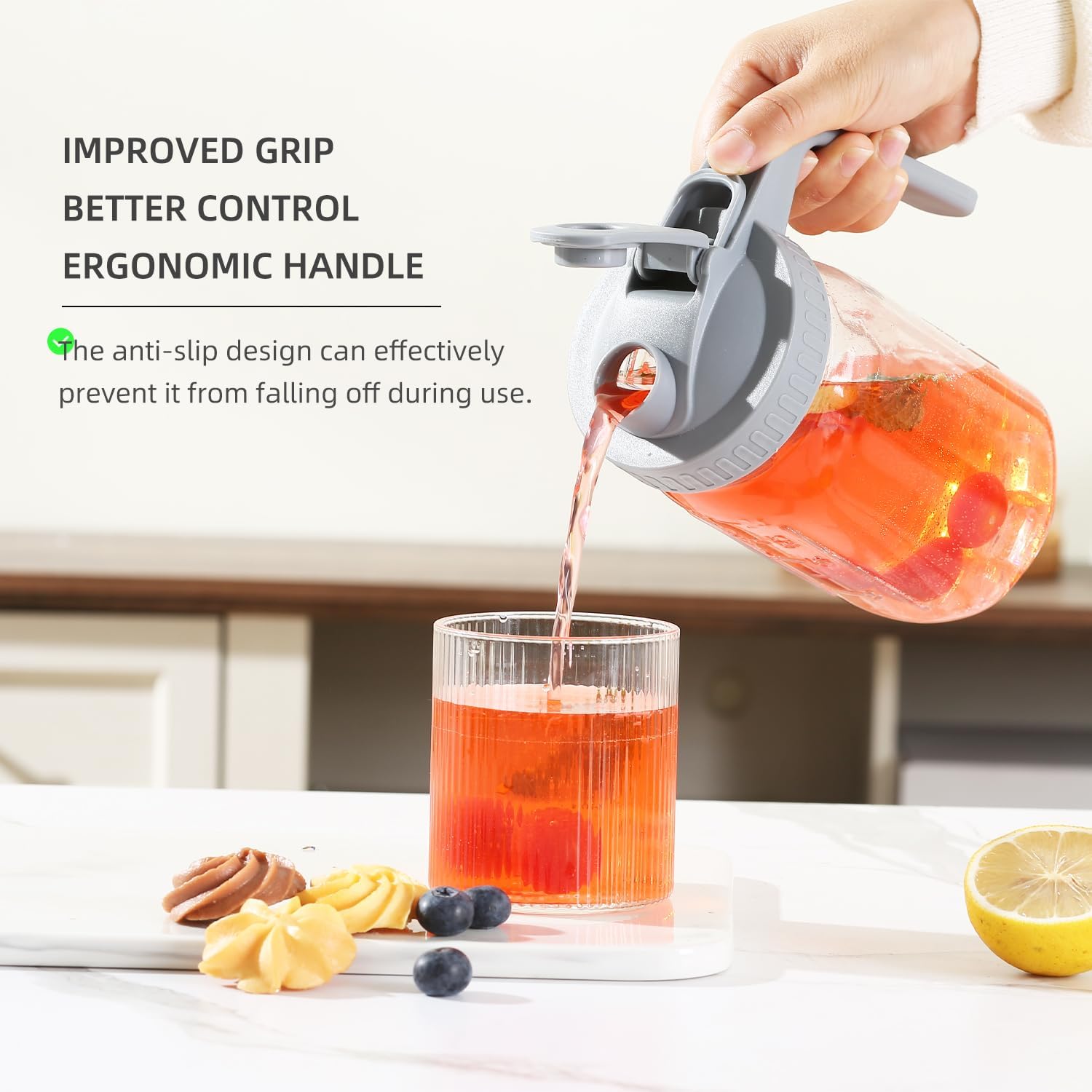 - Precision Pour Engineering: Thickened ergonomic handle supports full-pitcher weight. Anti-drip spout with locking lid enables controlled pouring, eliminating spills and wobble.