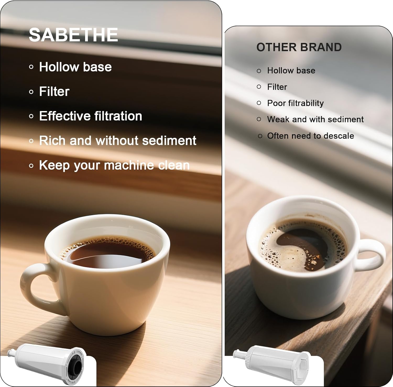 - Product Benefits : Reduce chlorine, heavy metals, improves coffee taste, and extends machine life