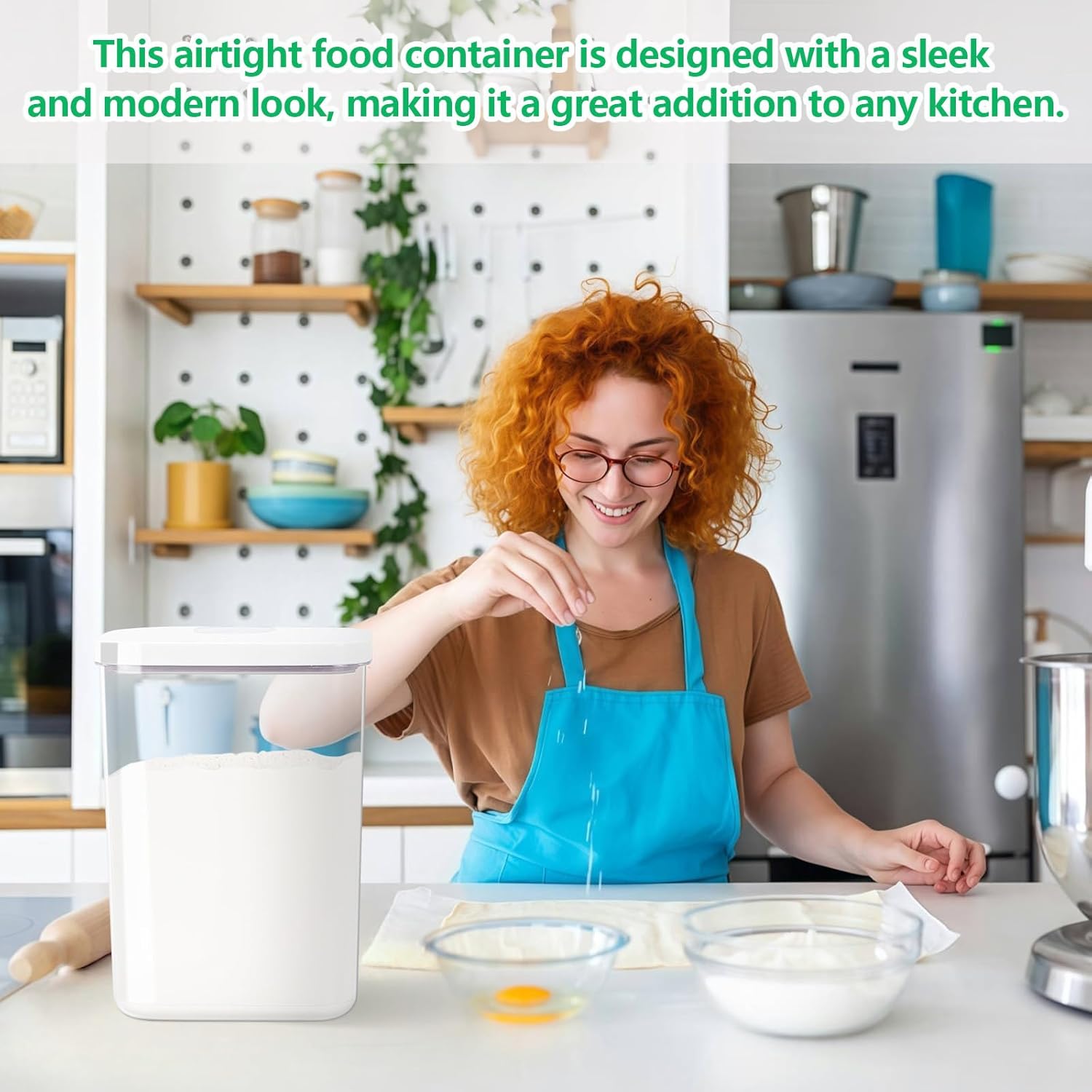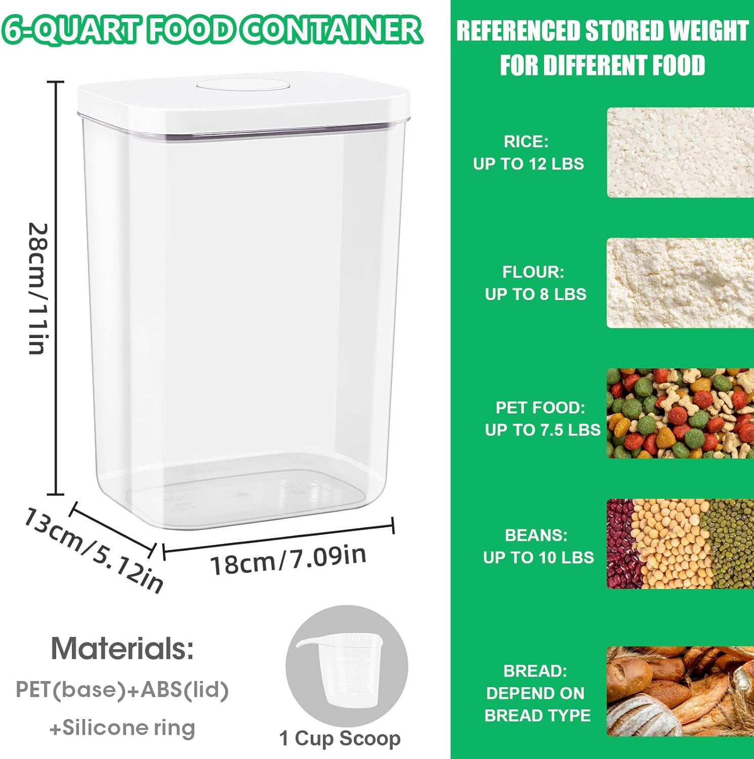- VERSATILE FLOUR STORAGE CONTAINERS: With the generous 5.6 liters/ 6 Qt / 23.6 cup capacity, this food storage containers can hold a variety of items, including rice, flour, sugar, pet food, snacks, laundry detergent, coffee pods, or any other household essentials. Say goodbye to cluttered shelves and cabinets