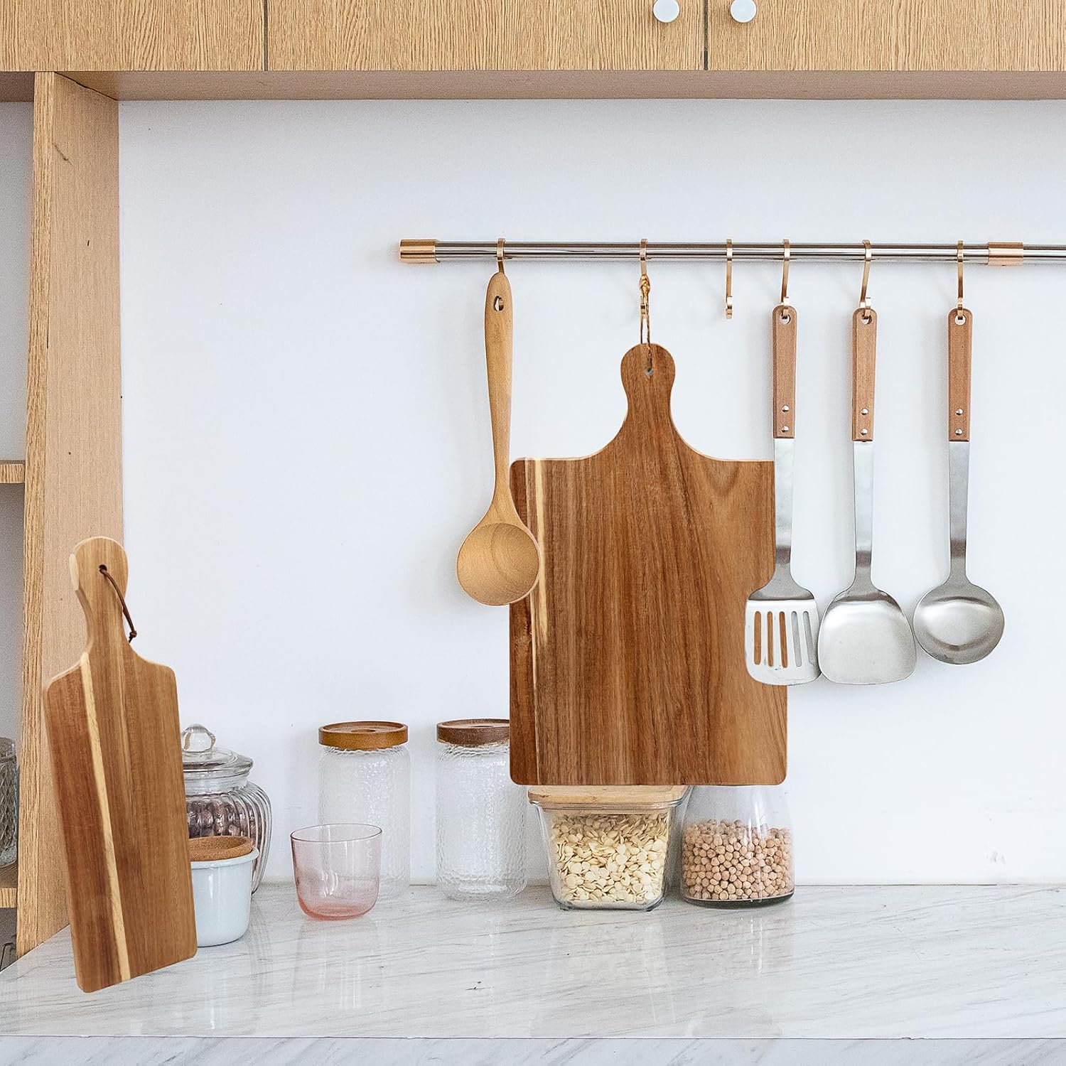 - Natural Material: our wood chopping boards are made of quality acacia wood, solid and sturdy, can withstand the demands of weighted objects and better for cutting meats; The natural wood grain also adds a touch of uniqueness to each acacia cheese board, making them complement any kitchen decoration
