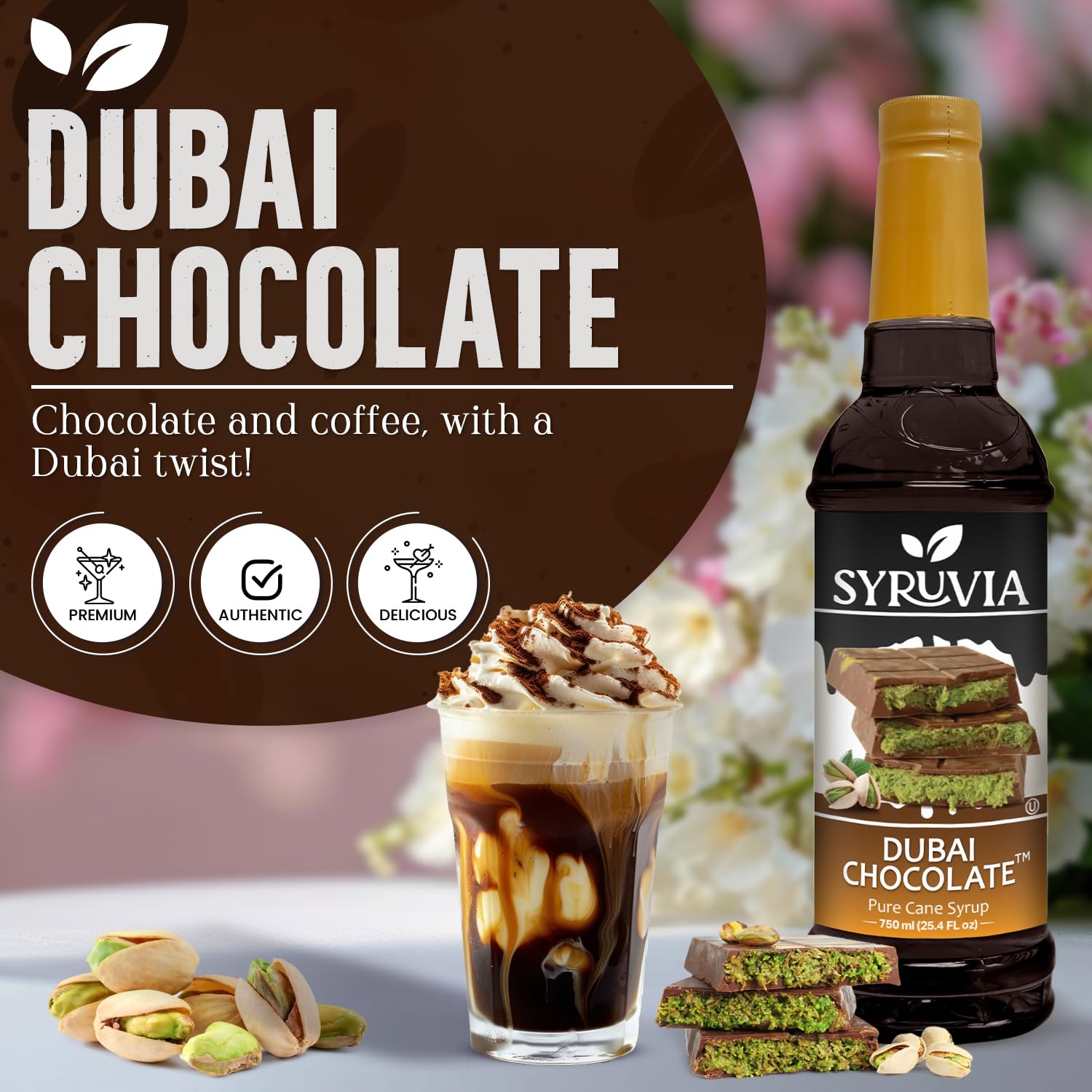 Syruvia Dubai Chocolate Coffee Syrup - 25.4 fl oz - Kosher Syrups, Gluten Free, No Coloring, Perfect for Drinks, Soda, Shakes, Desserts, and More.