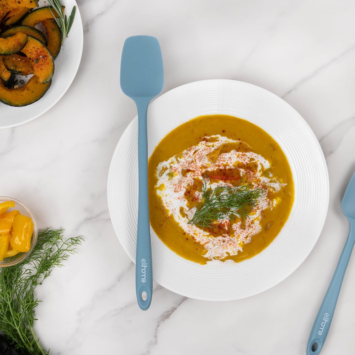 Elihome Skinny Silicone Spoonula - Non-Stick Heat Resistant Silicone Scraper Spatula for Mixing, Serving, Scraping, Stirring, and More - 11 Inch, Slate Teal Grey