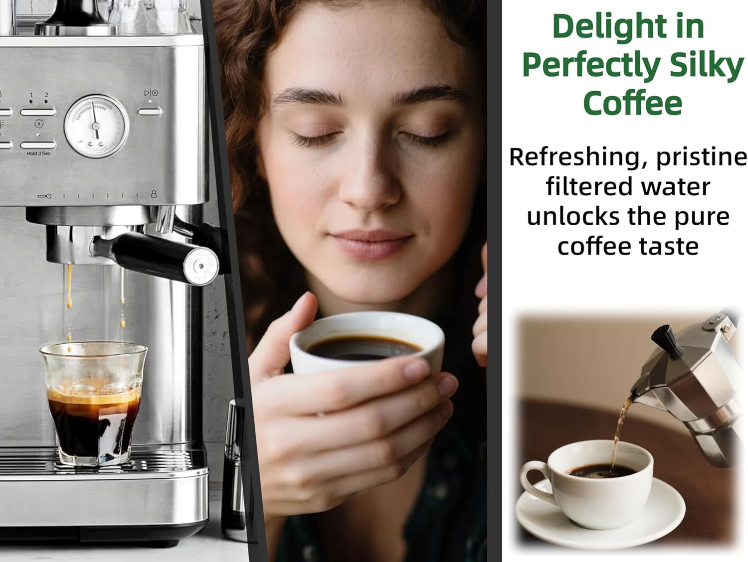 - 【Easy Installation & Hassle-Free Maintenance】- Simply soak the filter for 5-10 minutes, rinse, and insert into the holder. It is recommended to replace every 60 days (or sooner in hard water areas) to maintain peak coffee quality