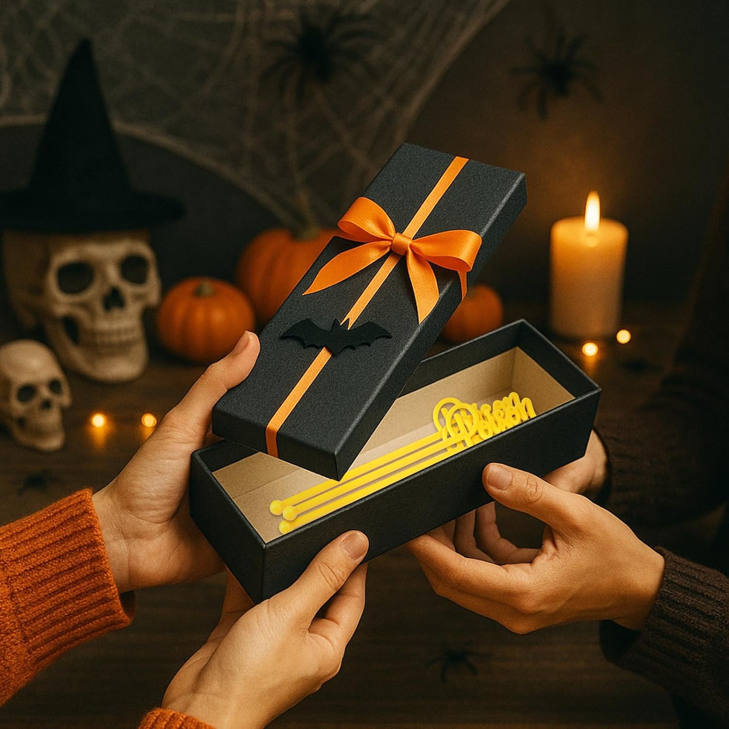 - Stylish and Unique: embrace the fall spirit with our themed swizzle sticks for cocktails; The vibrant yellow poison design will add a splash of color to your cocktails, hot chocolates, and other bewitching beverages, making them not just a practical tool, but a fun and festive addition to your fall celebration