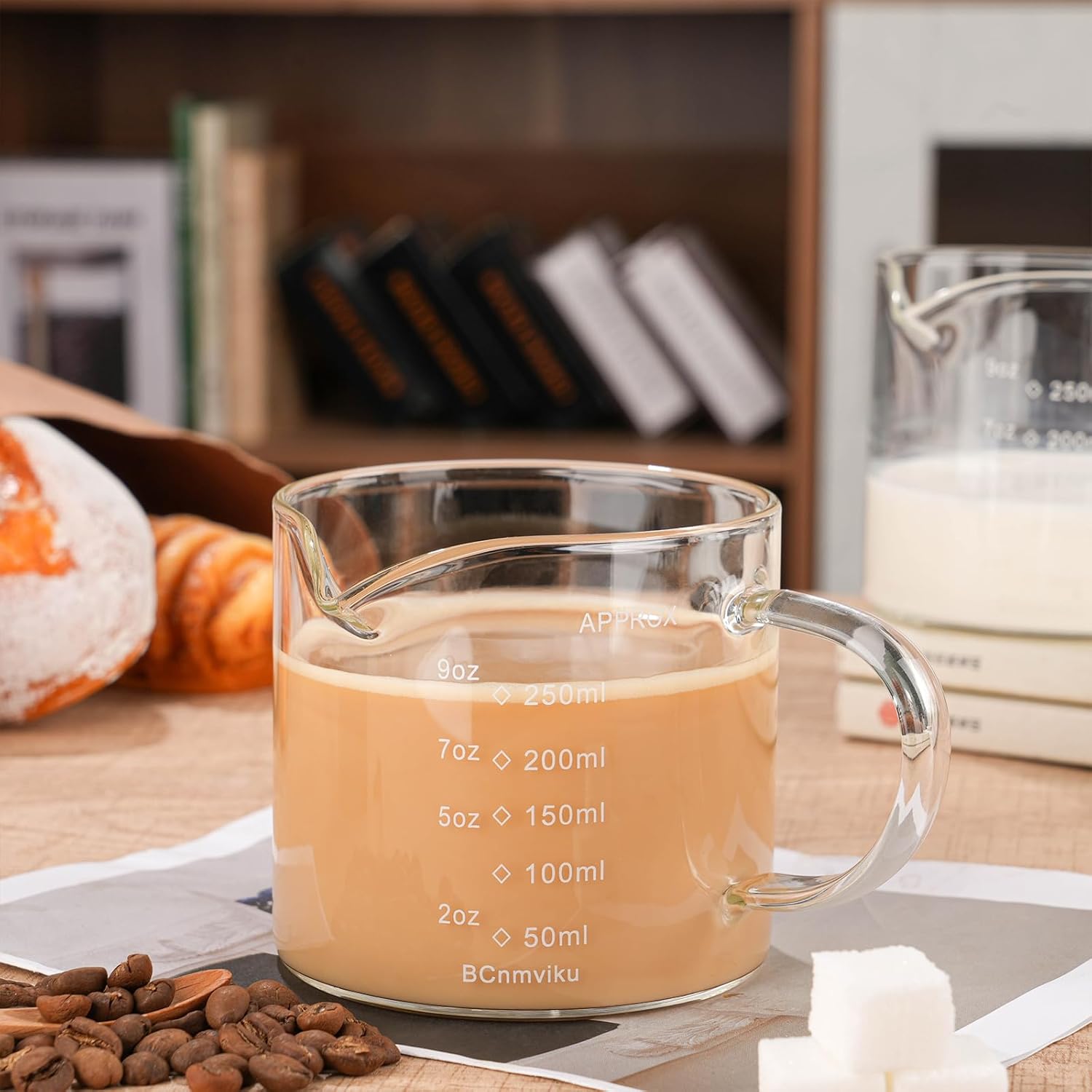 BCnmviku Espresso Cup Measuring Cup Triple Pitcher Milk Cup 250ML/8.5OZ Espresso Cups with Handle Shot Glass with V-Shaped Mouth Clear Accessories Milk Frothing Pitcher (1)