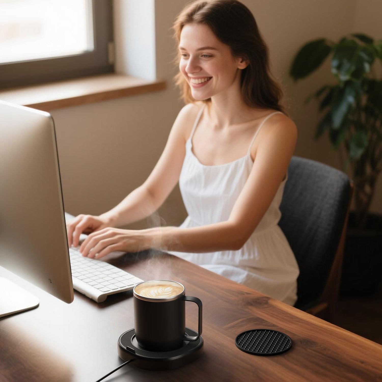 - Fit for Most Cups: 4.5 inch heating plate also fits for other glass cup, ceramic cup, porcelain cup etc. NOT suitable for plastic cups and double insulation mugs. Sealed heating plate with silicone coaster creates protection for you. Dual safety design: Non-slip base keeps warmer stable while the silicone cover to prevent burns on the exposed surface during the warmer plate working on desk and lets you reposition the self-heating mug safely