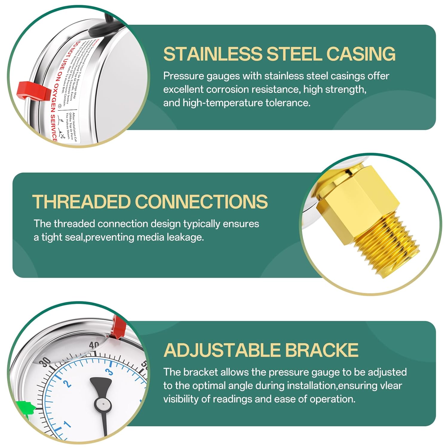 - [PRODUCT NAME] Heater Heavy Liquid Filled Pressure Gauge Kit (with Range Mark Pointer- helps monitor pressure changes indicating potential leaks)