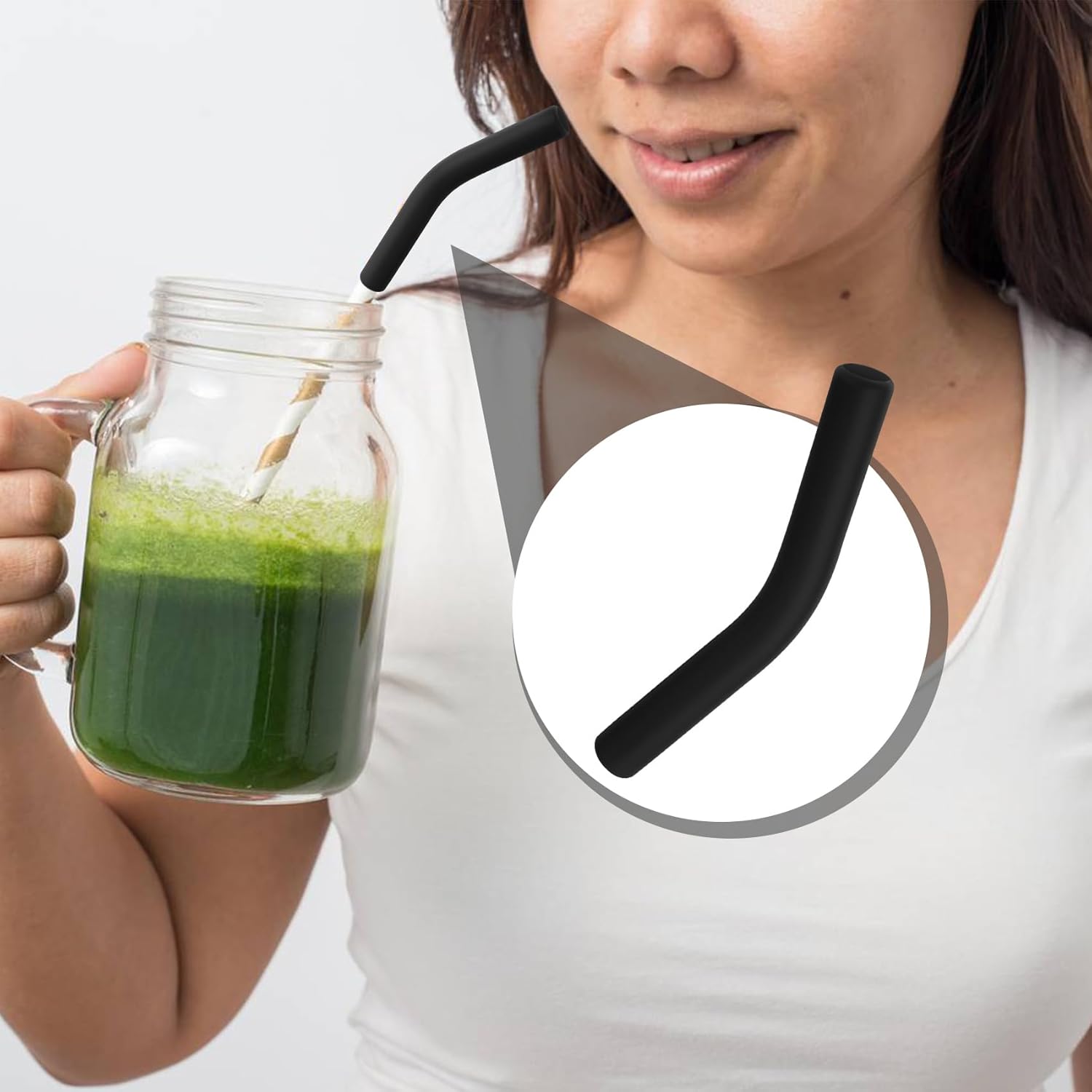 6pcs Food-Grade Silicone Straw Tips, Reusable Metal Straw Elbows Tips, Temperature Resistant Rubber Straw Covers Replacement Tip for 5/16" Stainless Steel Straws - Black