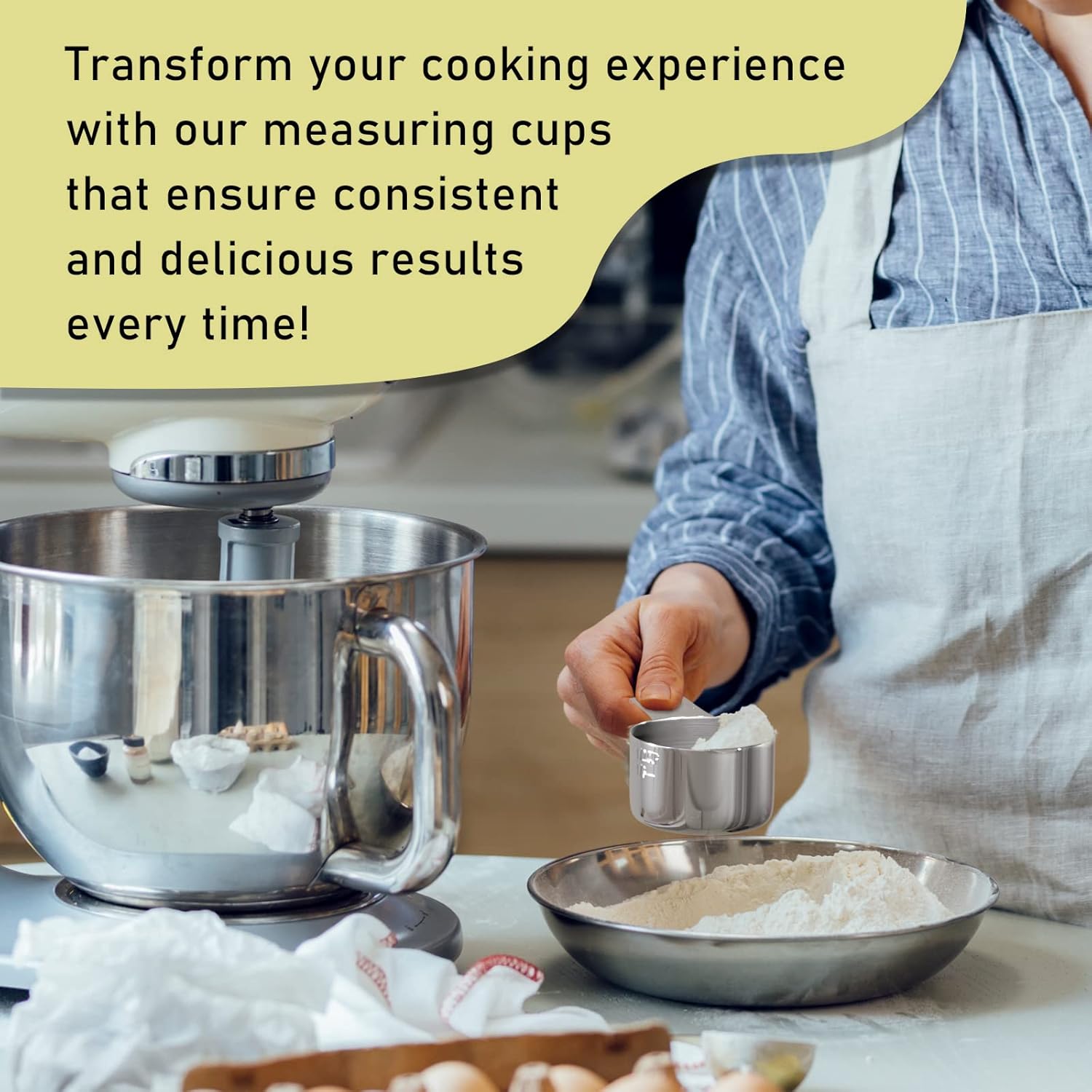 4PCS 1/2Cup (120ml, 4oz) Single Measuring Cup, Stainless Steel Measure Scoop, Metric and US Measurement, Dishwasher Safe