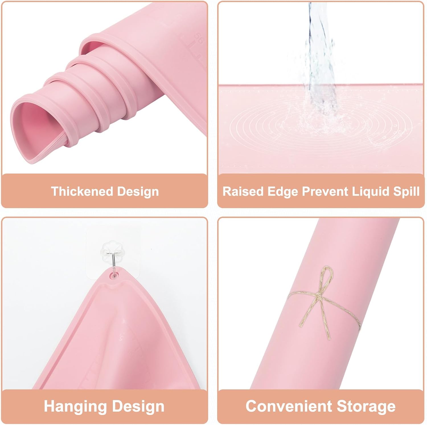 uxcell Silicone Pastry Mat, 19.7" x 15.8" Silicone Baking Mat with Measurements, Non-Stick Dough Rolling Mat for Making Pastry Cookies Bread Pizza Pink