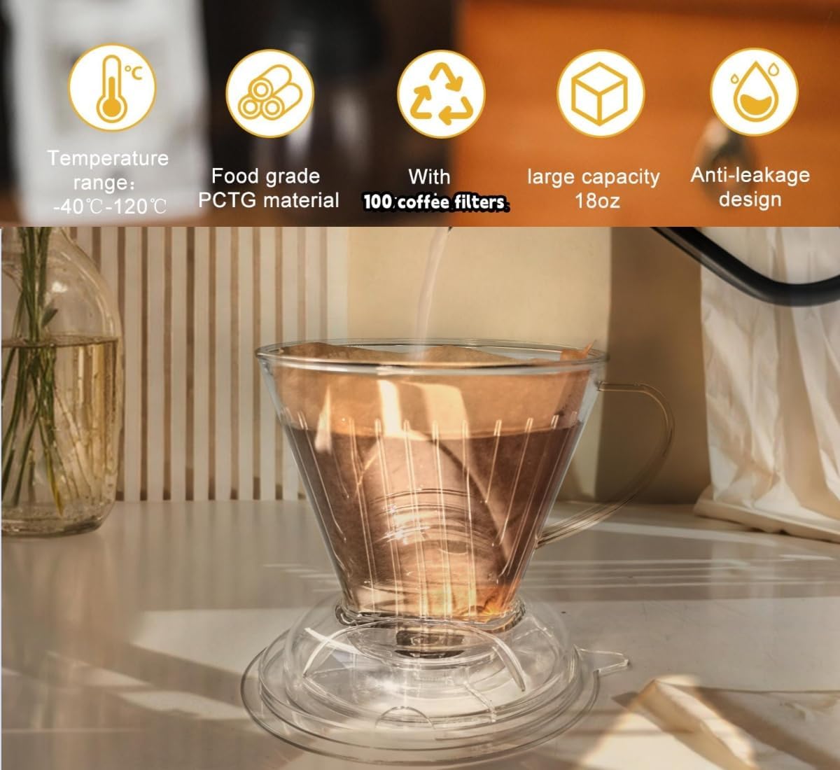 - 【Safe to use】 Crafted from 100% BPA-free PCTG plastic, our dripper withstands extreme temperatures (-40°C to 120°C)