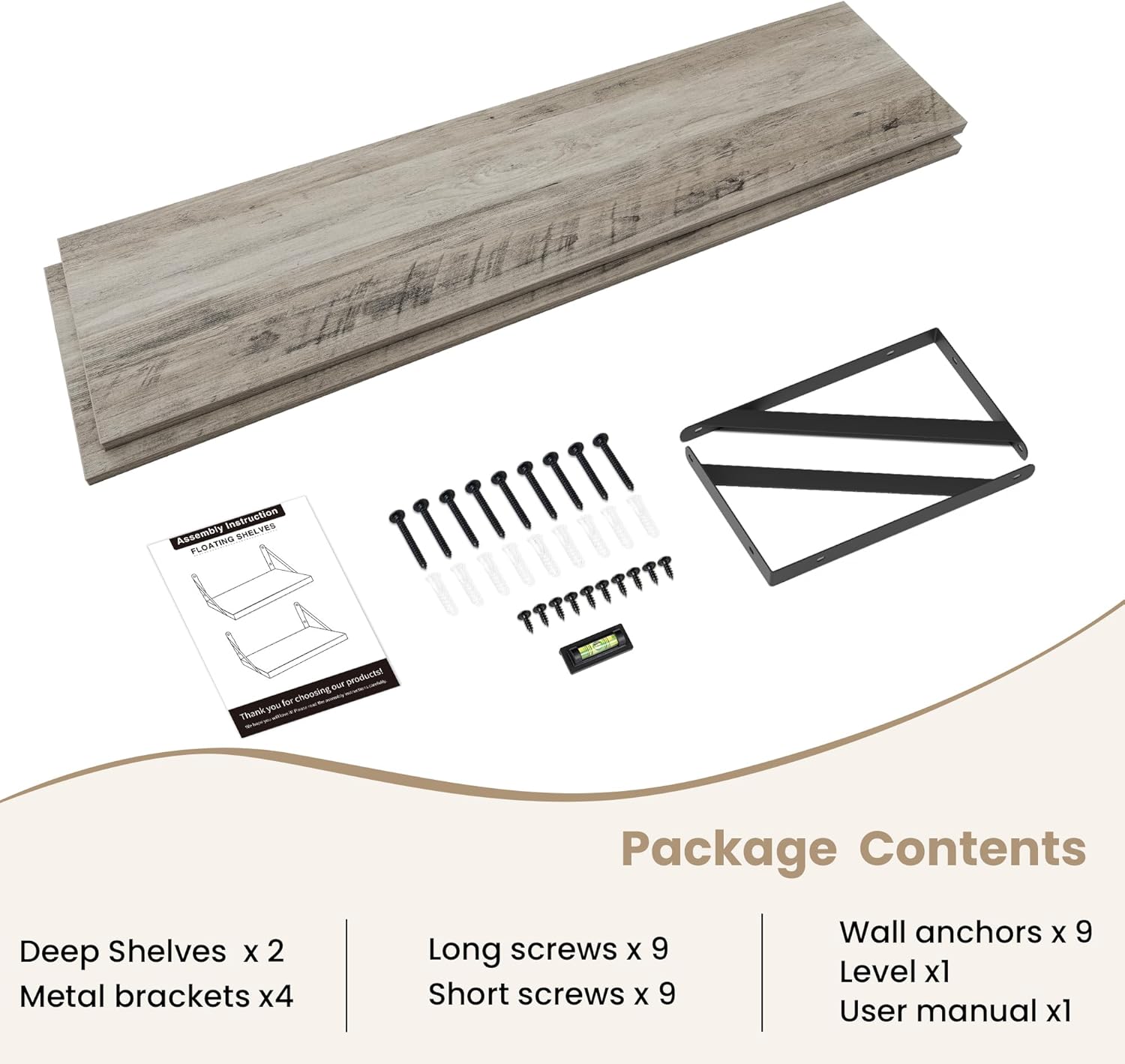 - Easy to assemble: Easy to install in minutes with the installation manual. In addition, when you mount our deep floating shelves firmly on the wall, they can hold up to 80 lbs of weight.