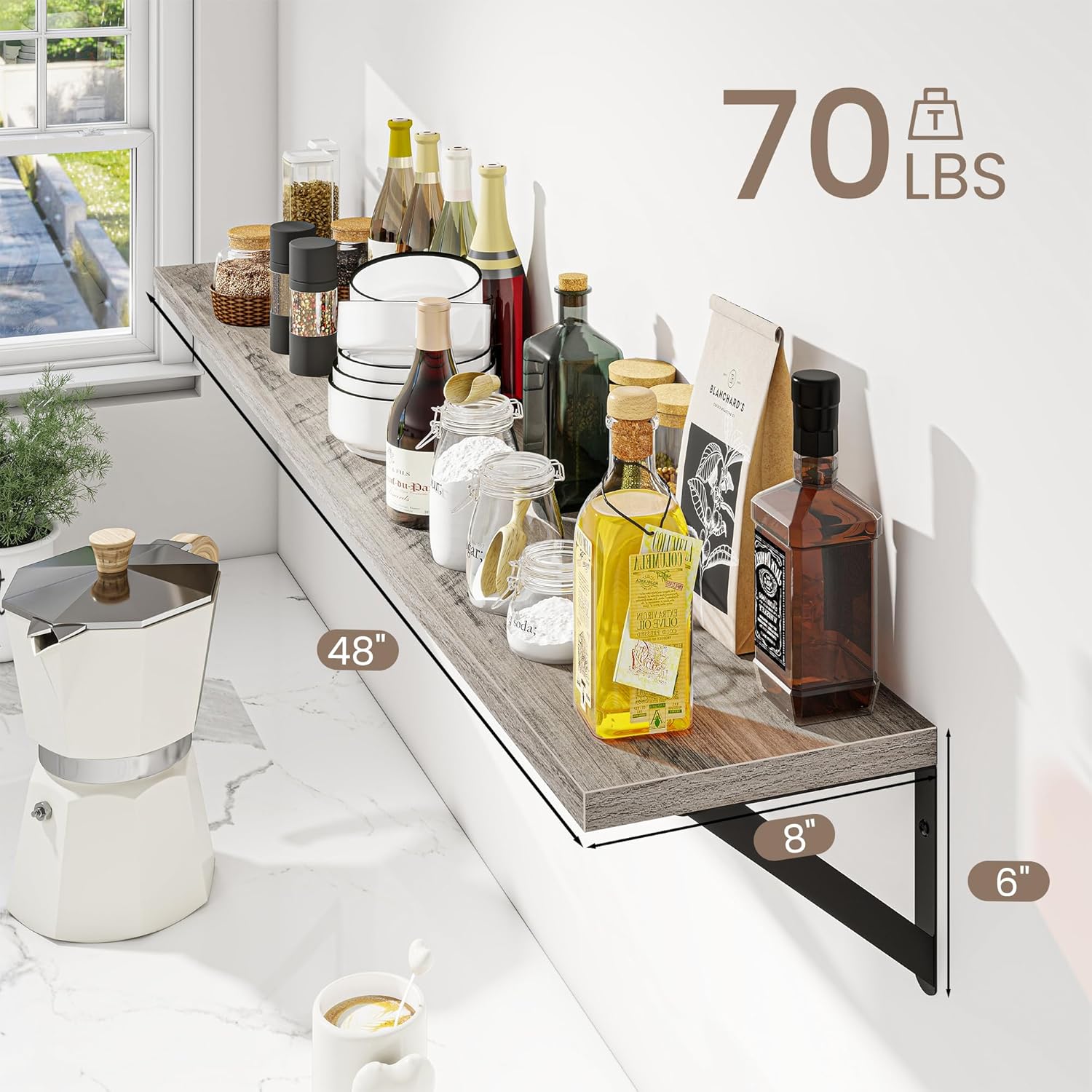 - Large with more Storage: With dimensions of 48 W x 8 D inches, these wall shelves offer ample space for storage and display. Whether you're showcasing your favorite books, photos, or decorative items, you'll find plenty of room to keep your essentials organized and within reach.