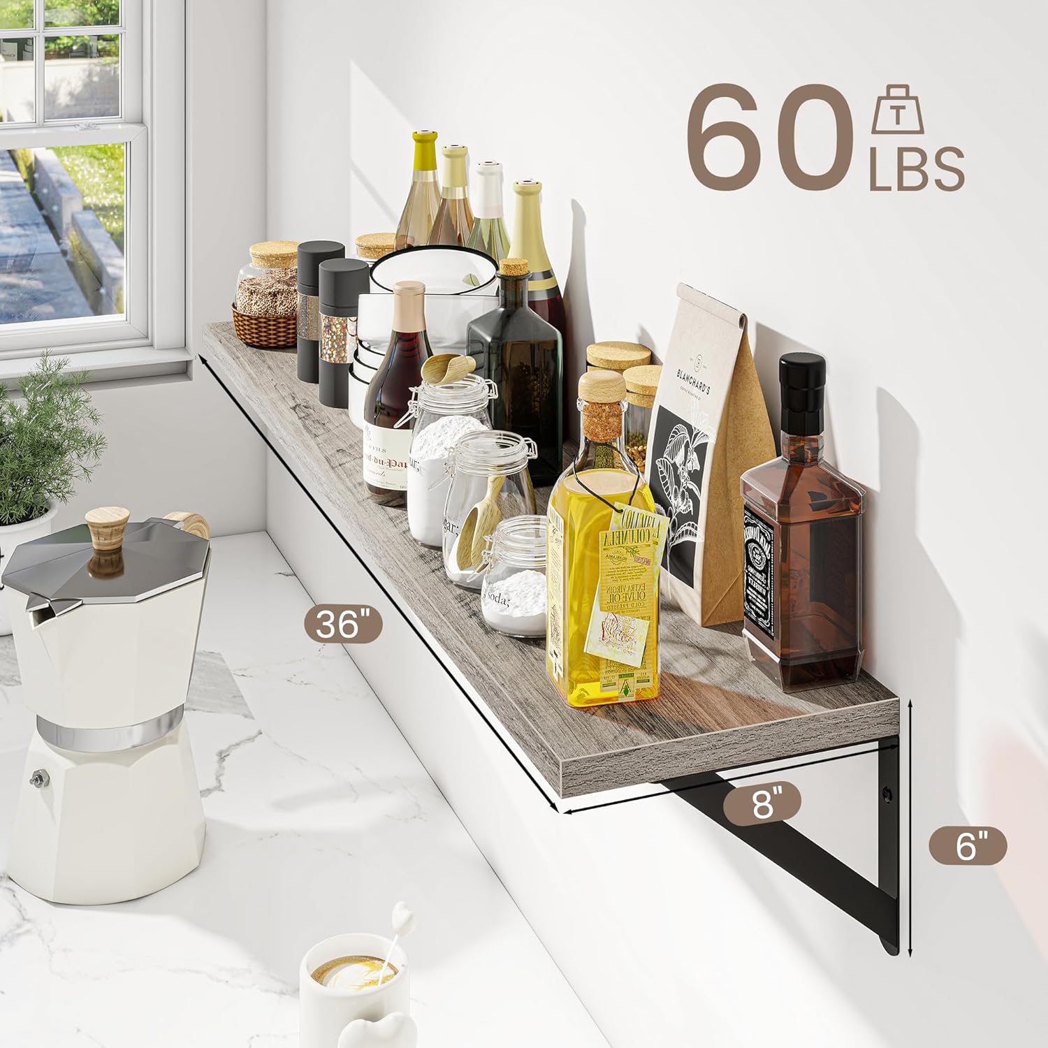 Dreamland Grey Floating Shelf 36 inch, 36W x 8D Wall Mounted Shelves Set of 2, Wide Display Ledge Shelf with Sturdy Metal Brackets for Living Room, Bathroom, Bedroom and Kitchen