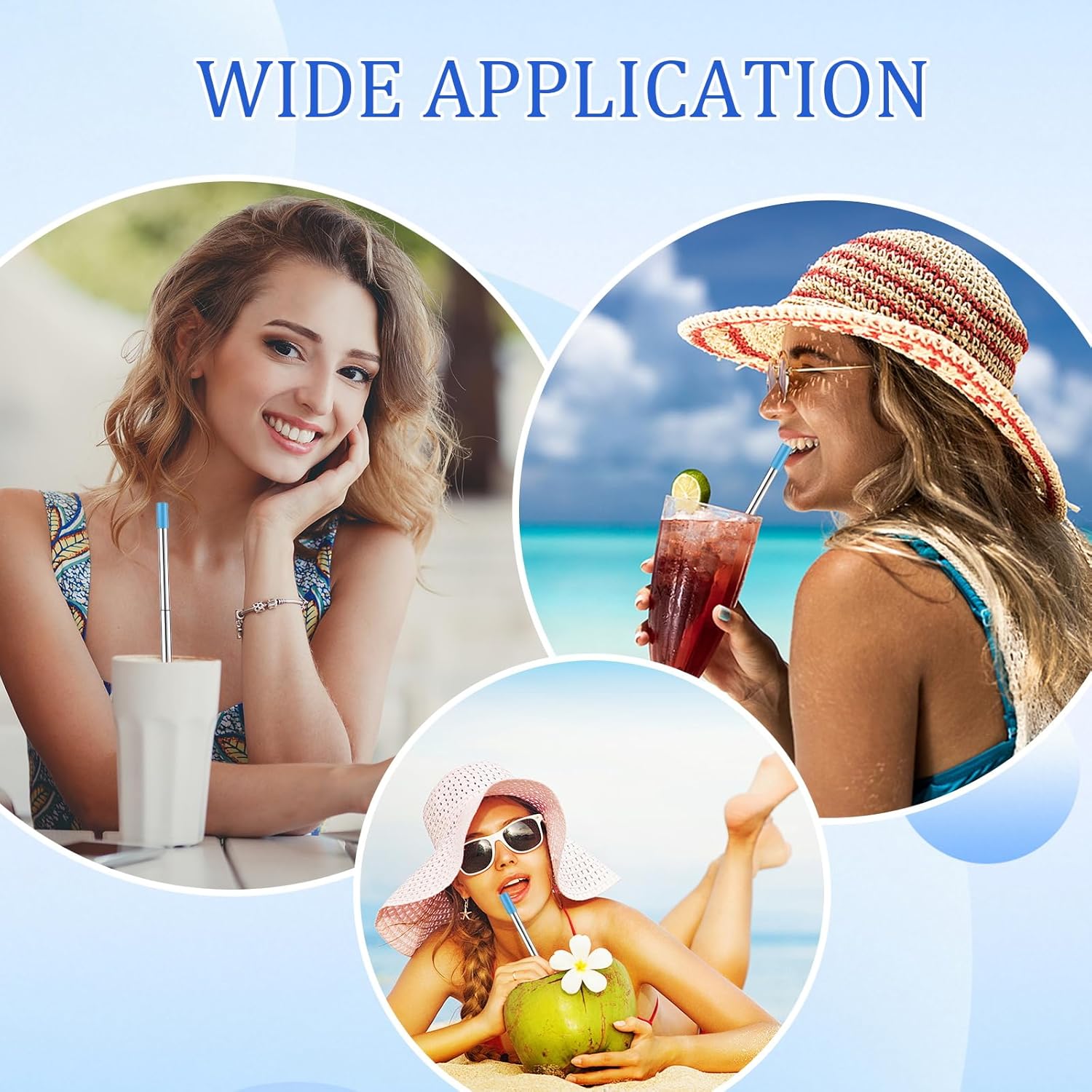 4 Pack Reusable Metal Straws Collapsible Stainless Steel Drinking Straw Travel Portable Telescopic Straw with Case for Cruise Ship Essentials Black-Rose Gold-Silver-Turquoise