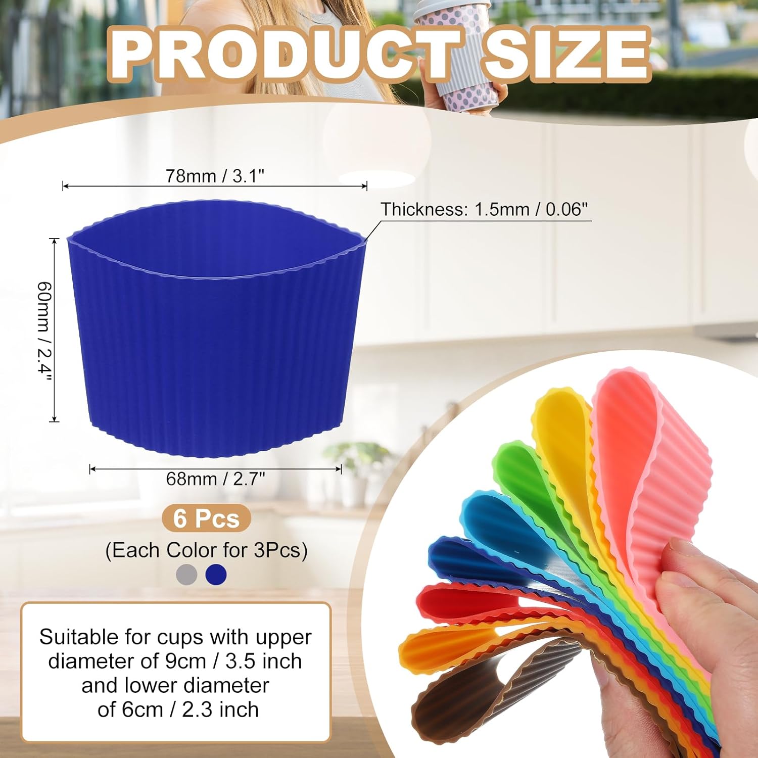 uxcell 6Pack Coffee Cup Sleeves, Reusable Silicone Heat Resistant Cup Protective Sleeve Nonslip Mug Protector Cover for Home Travel Coffee Mug Glasses Water Bottle Boots, Dark Blue/Gray