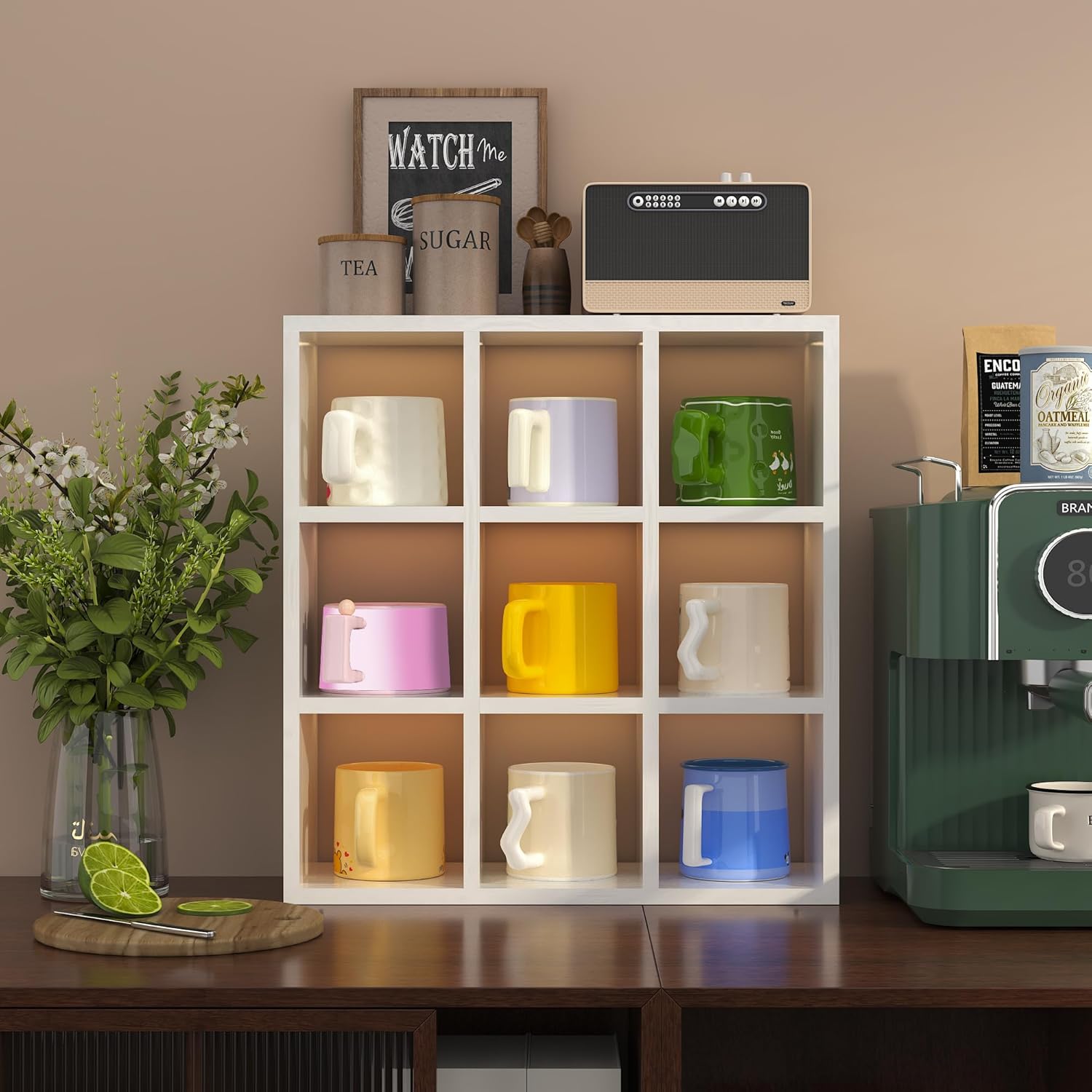 - 【High-quality and Size】Our each coffee mug cabinet is carefully handcrafted, promising attention to detail and premium finishes. This finely crafted mug holder doesn't only serve a purpose but also adds a touch of artisanal craftsmanship and uniqueness to your home decor; The coffee mug rack's dimensions are 16.5x 17.5x 4.7 inches, Each grid size:4.8x 5x 4.7 inches, it can efficiently store up to 9 coffee mugs, ensuring the longevity of your beloved mugs.