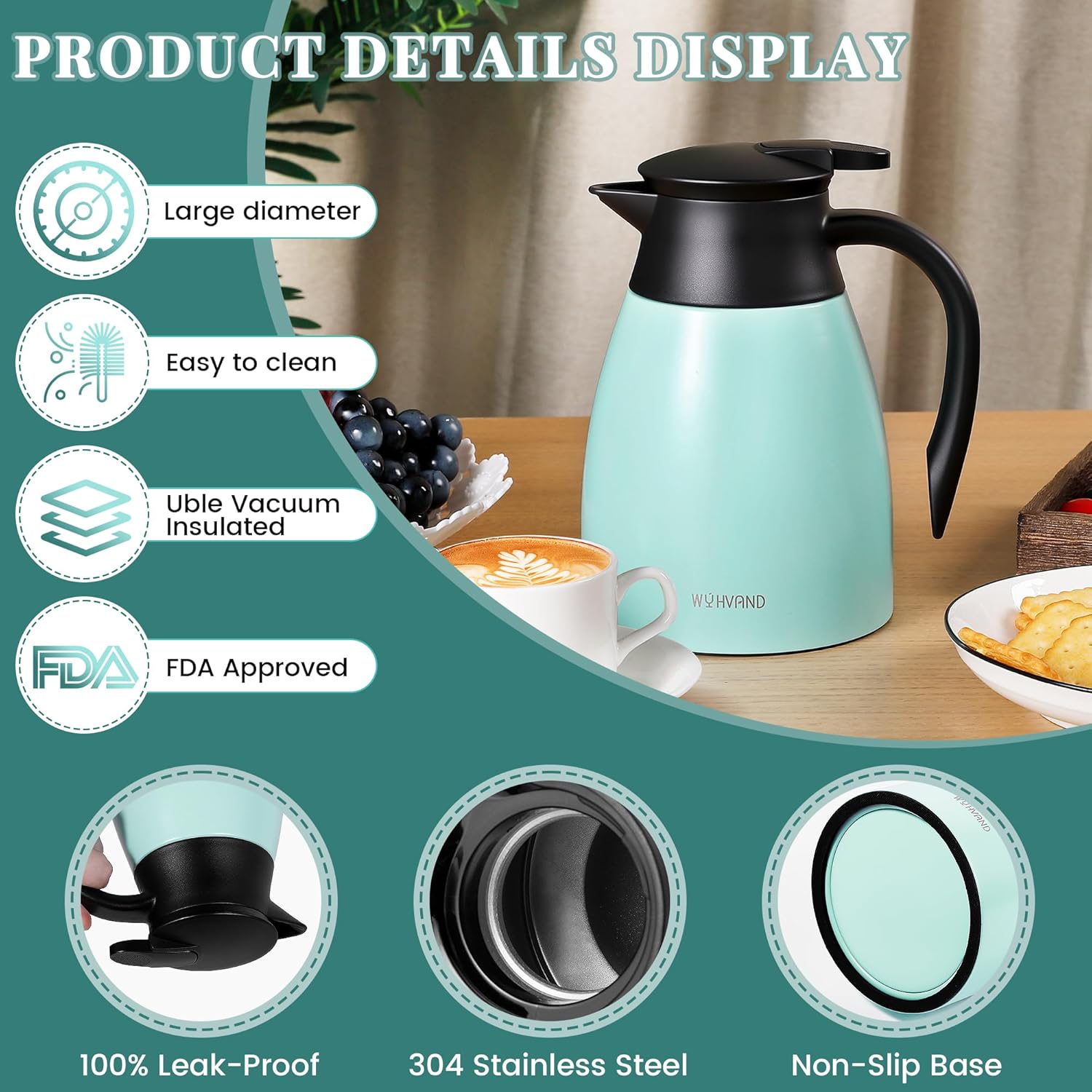 - Durable 304 Stainless Steel:Double-Stainless steel coffee carafe with double-walled 304 food-grade interior/exterior, odor-free. Non-slip base + scratch-resistant surface. Reusable thermos carafe for home/office