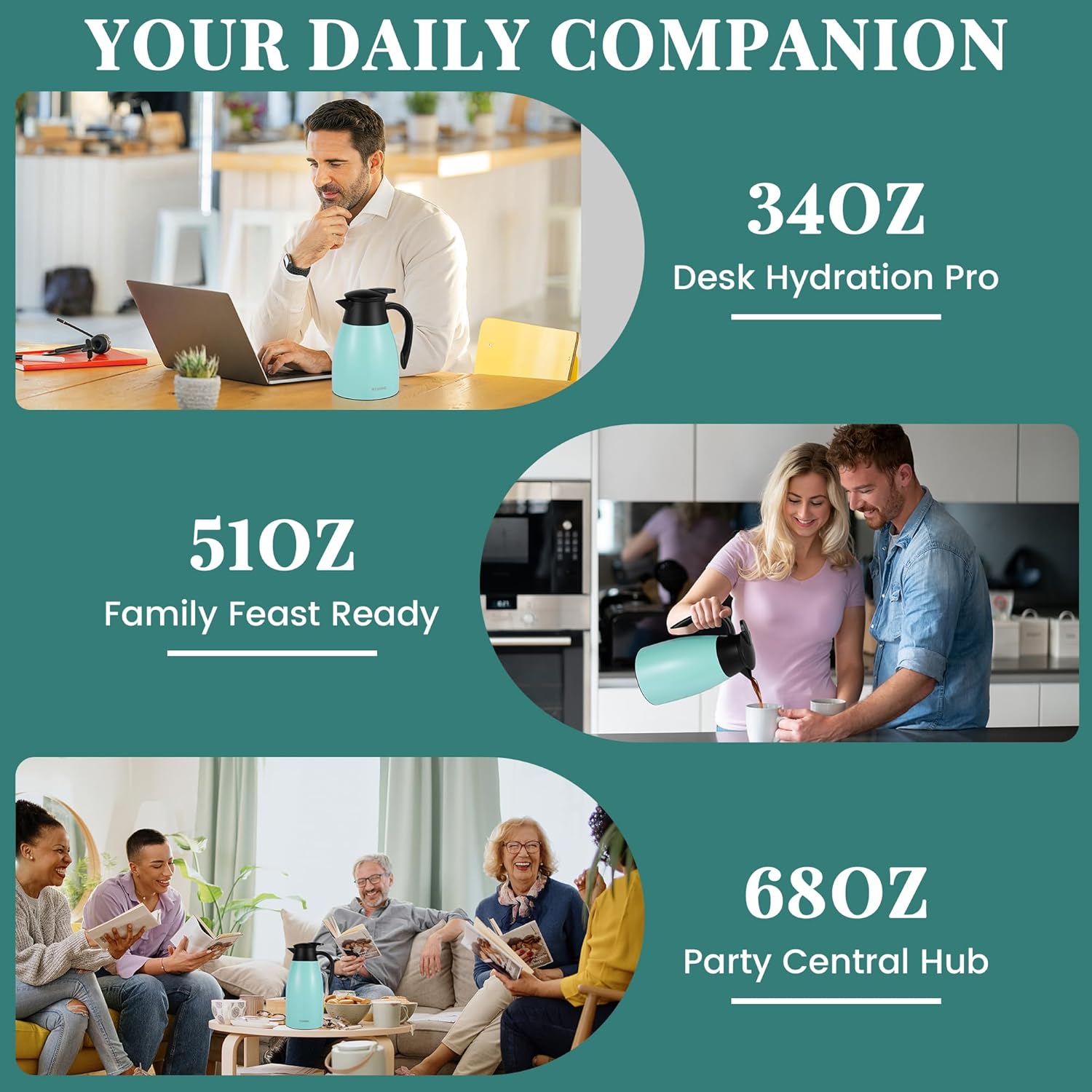 - Versatile & User-Friendly:Large coffee carafe (34 oz / 1 L) suits gatherings/offices. Pre-heat/pre-chill to keep coffee hot/cold longer. Sleek iced coffee carafe & hot tea thermos in one