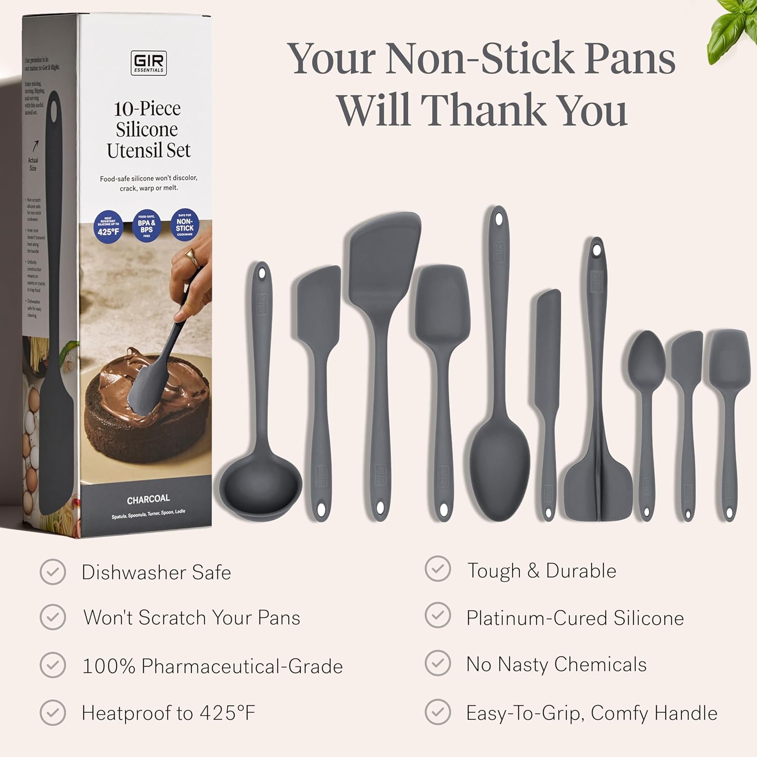 GIR: Get It Right 10 Piece Silicone Utensil Set - Ladle, Spatula, Flip, Spoon & Spoonula, Non-Stick, Heat Resistant, Dishwasher Safe, Silicone Kitchen Utensils, Baking Supplies