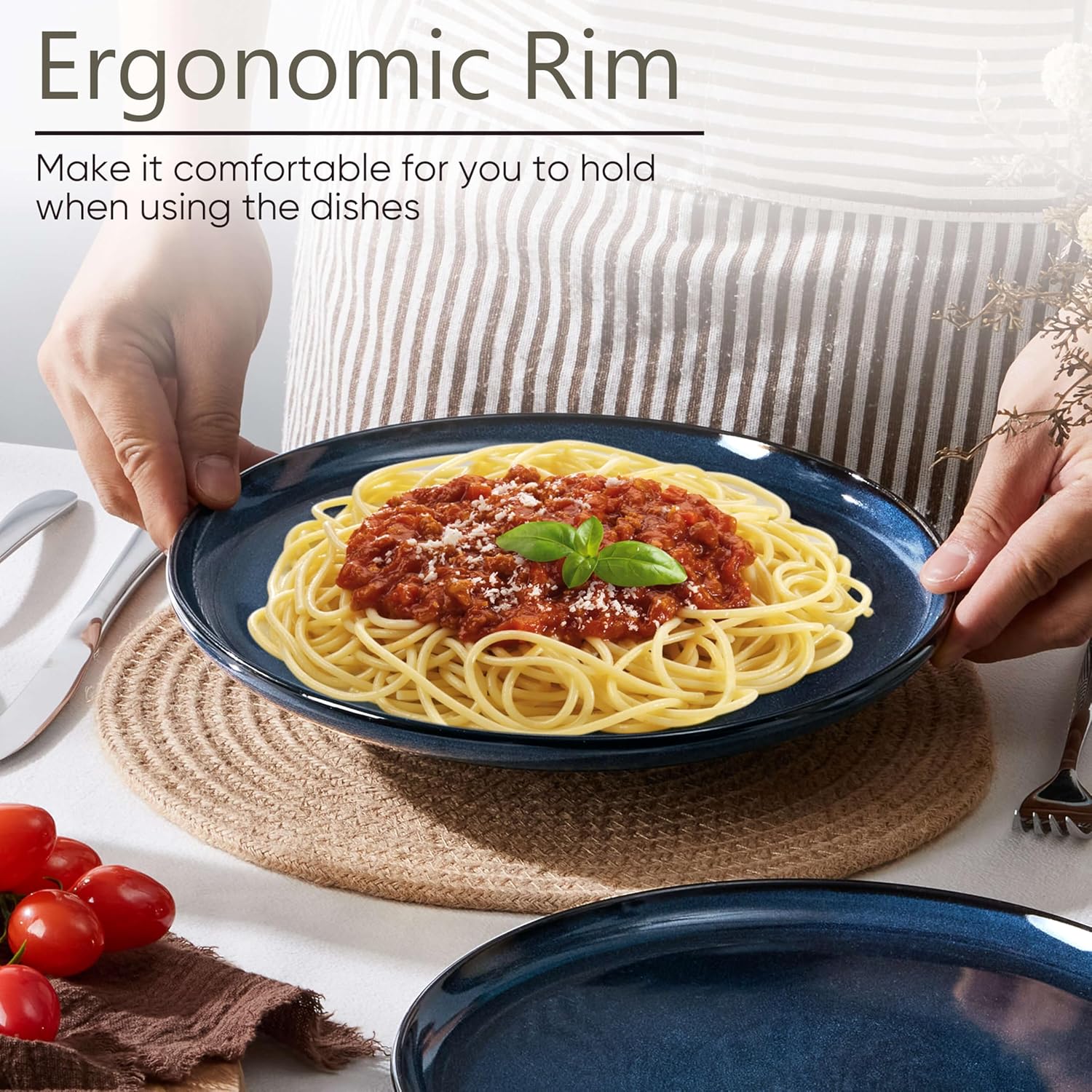 - Double reactive glaze craftsmanship, our plates are made with double-layer reaction glaze technology, which enriches the color of the stoneware and enhances the durability of the surface, the handmade edges complement the shiny glaze, making the bowl surface bright and appear uniquely appealing, also more wear-resistant, less likely to be scratched by tableware, and easy to clean