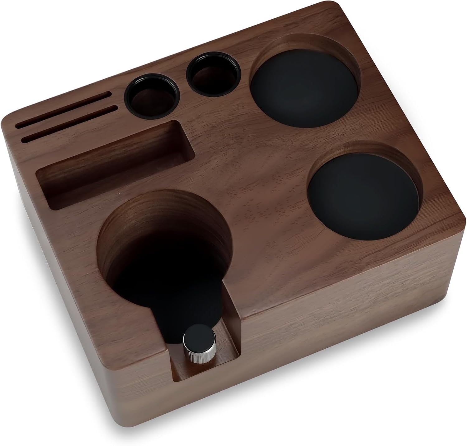 - BEAUTIFUL & FUNCTIONAL WALNUT DESIGN: Made from premium solid walnut, our espresso tamper station adds natural elegance to your kitchen while providing a stable base for perfect tamping every time
