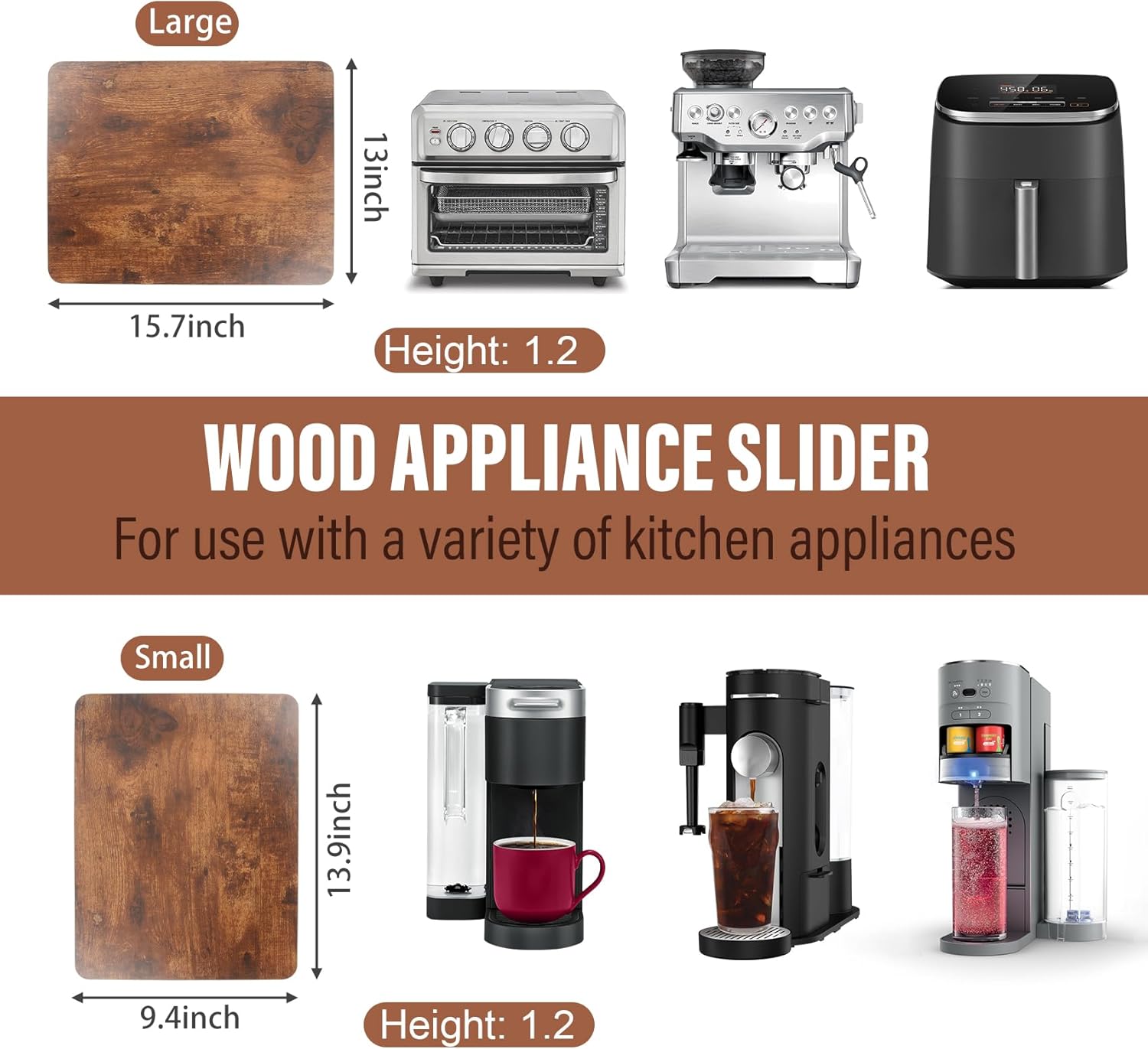 - 【Easy to Use】 No installation required. The sliding tray glides smoothly on surfaces like marble and wood, making it an excellent kitchen appliance accessory. Note: The slide board height is 1.2 inches. Please select the appropriate slide board based on the dimensions of your appliance's base and cabinet height.
