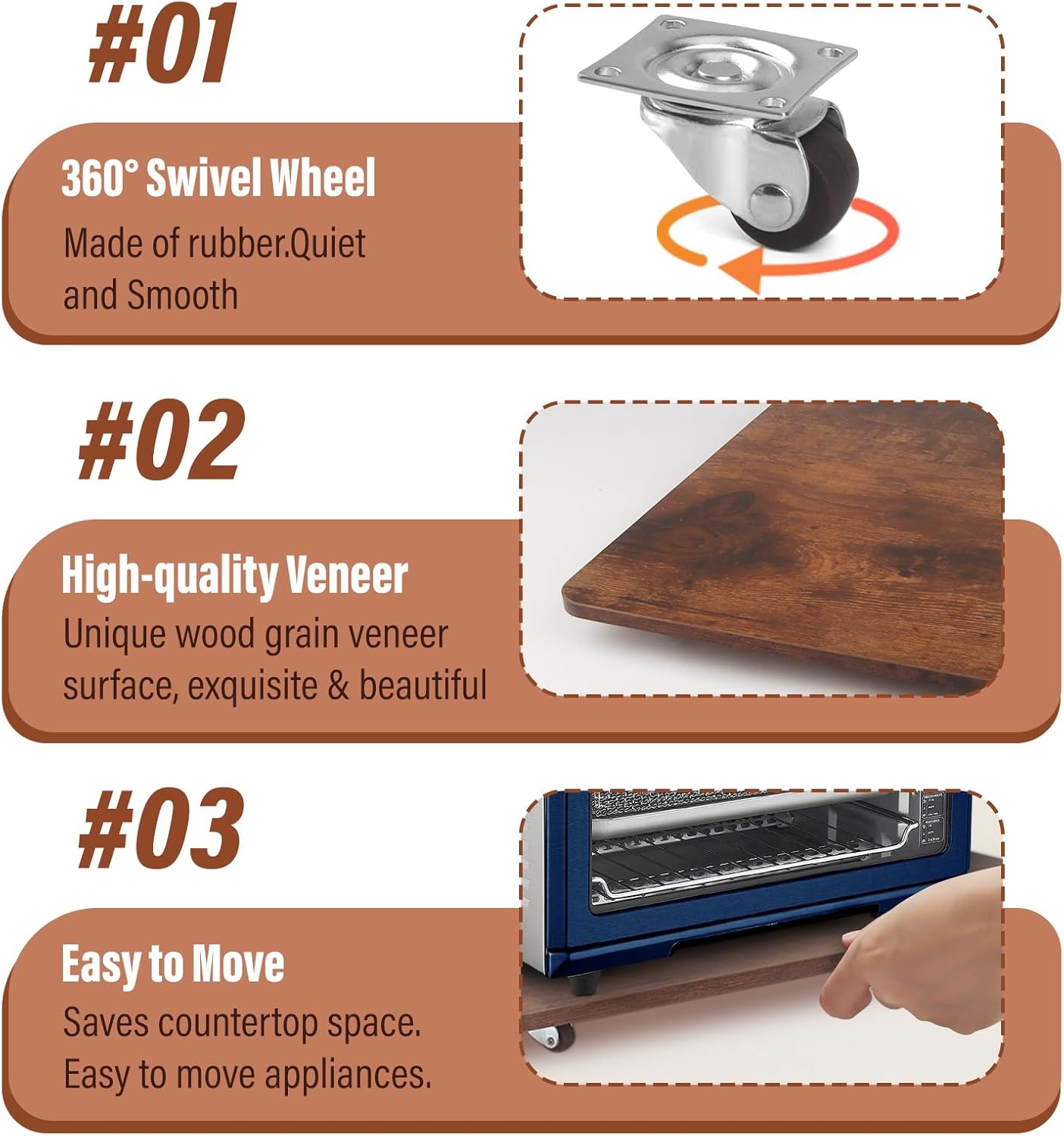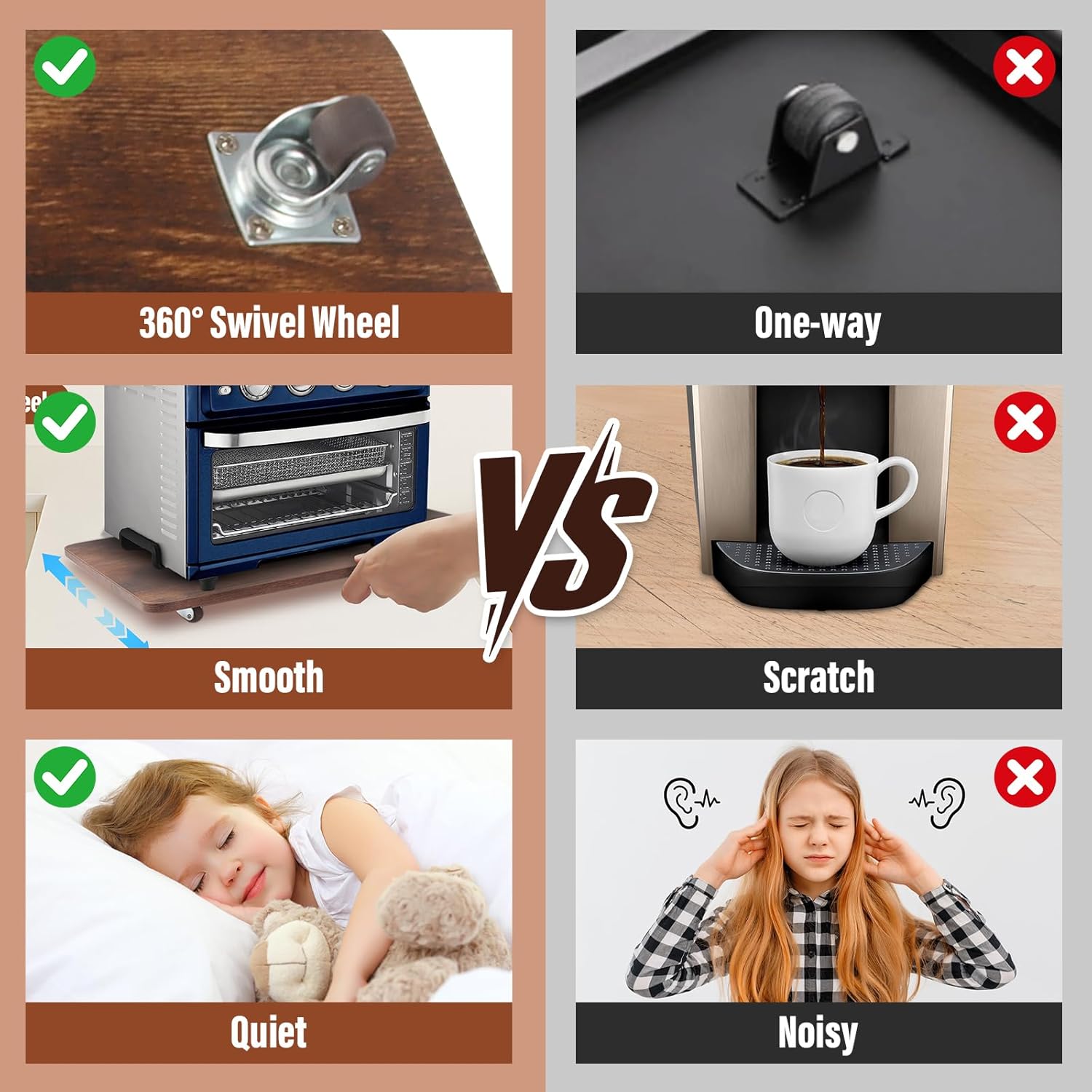 - 【Multi-Functional Rolling Tray】The sliding tray measures 12.9“ × 15.8” × 1.2", suitable for Breville, Keurig K-Mini, Ninja, small coffee makers, espresso machines, air fryers, toasters, and stand mixers.