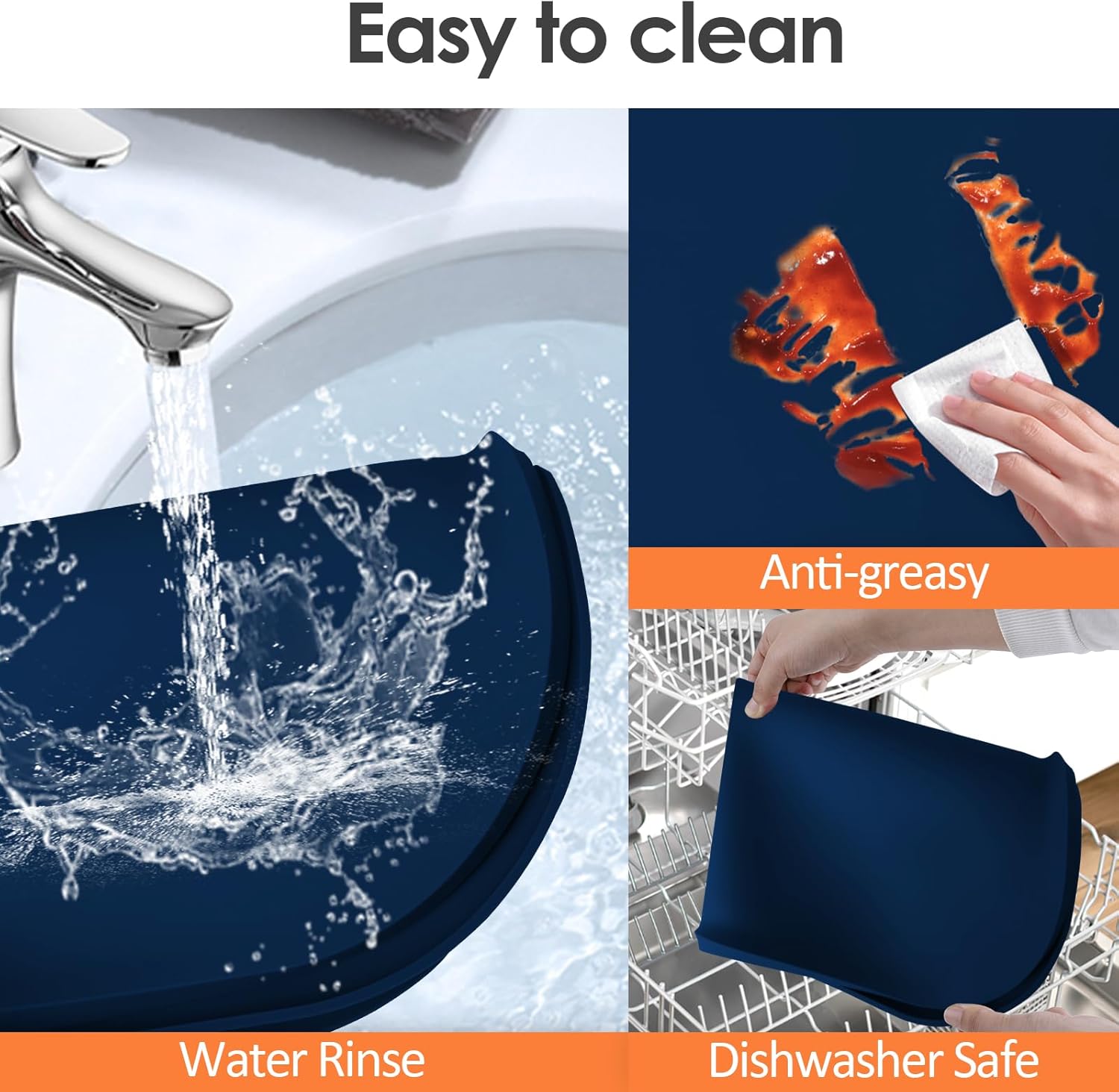 Silicone Coffee Maker Mat with Lip, 17.4'' x 10.6'' Heavy Duty Coffee Maker Mat for Countertops, Coffee Tray Fit Under Coffee Machine Appliance Automatic Machines Espresso Accessory, Navy Blue