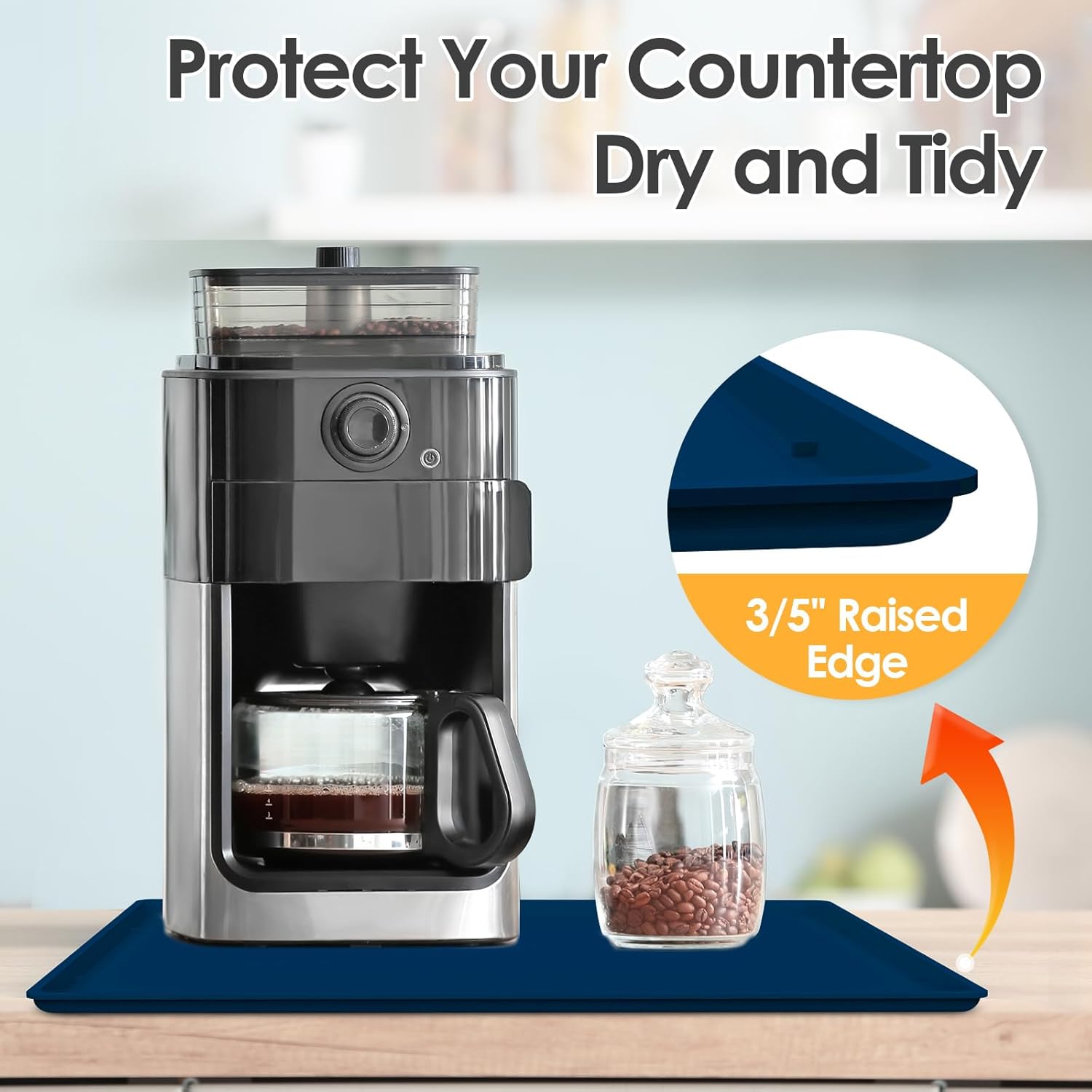 TOHONFOO Silicone Coffee Maker Mat with Lip, 19.7'' x 15'' Heavy Duty Coffee Maker Mat for Countertops, Coffee Tray Fit Under Coffee Machine Appliance Automatic Machines Espresso Accessory, Navy Blue