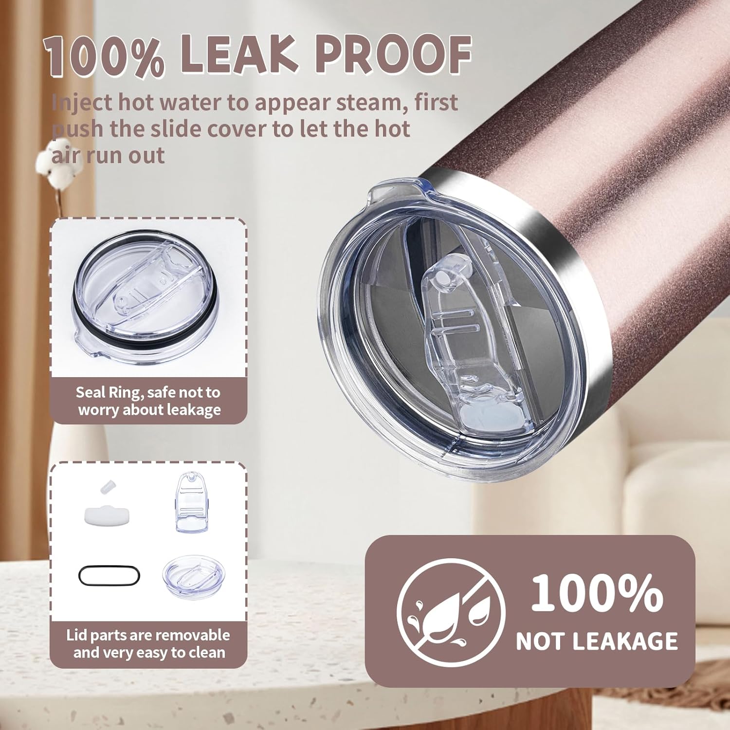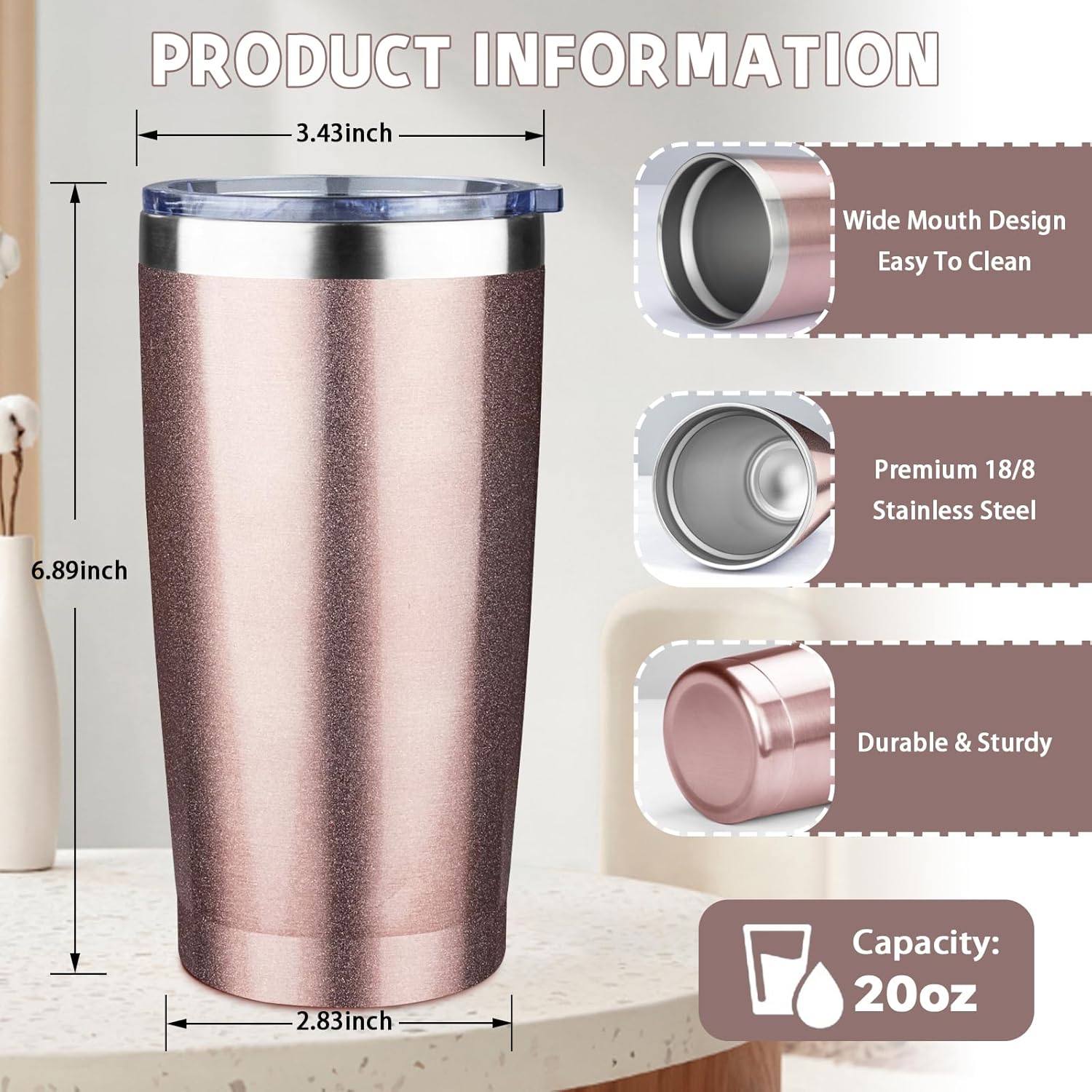 20 oz Tumbler with Lids and Straws, Stainless Steel Insulated Coffee Tumbler, Double Wall Vacuum Insulated Travel Mug Cup, Leakproof Thermal Coffee Cup for Hot and Cold Drinks (Rose Gold)