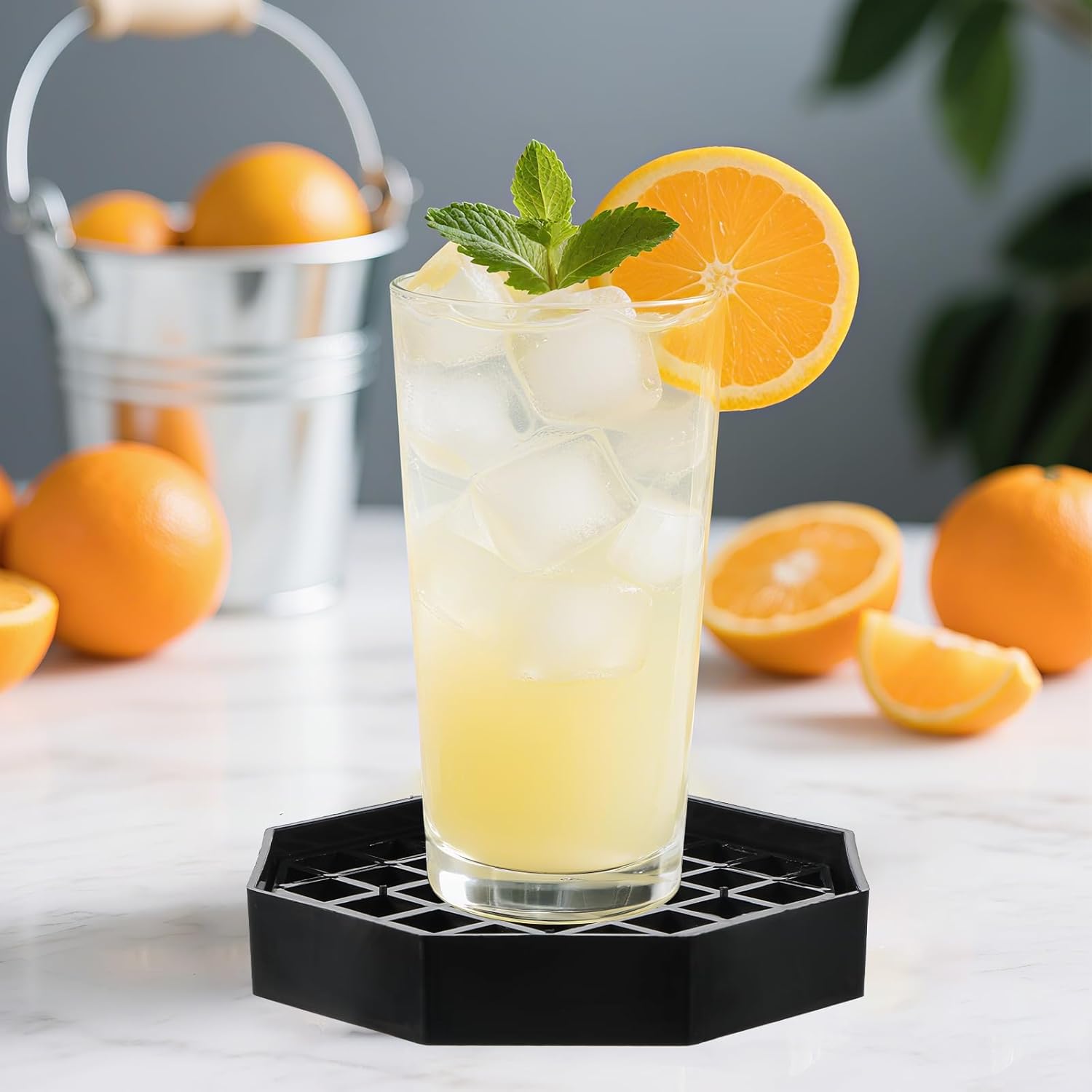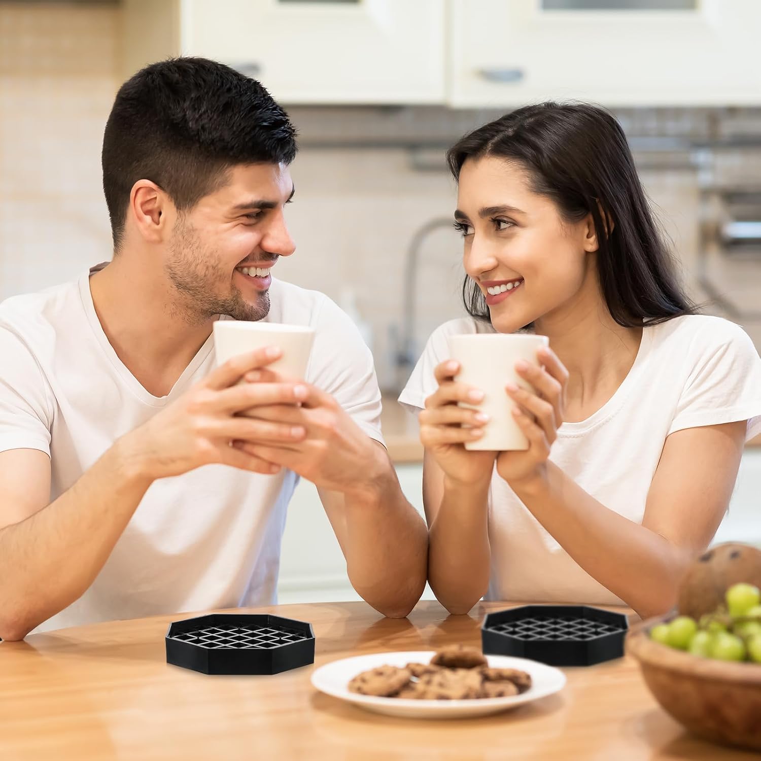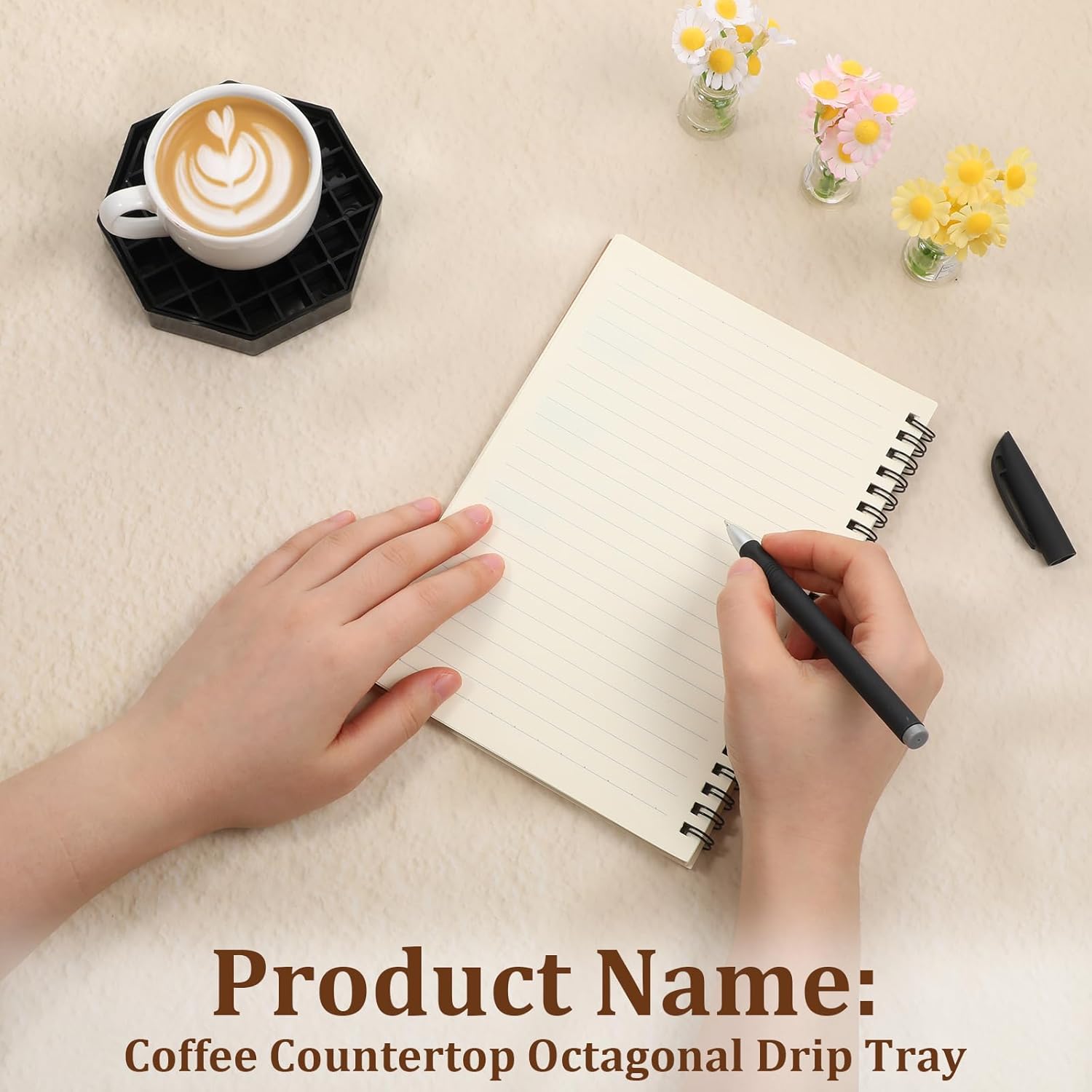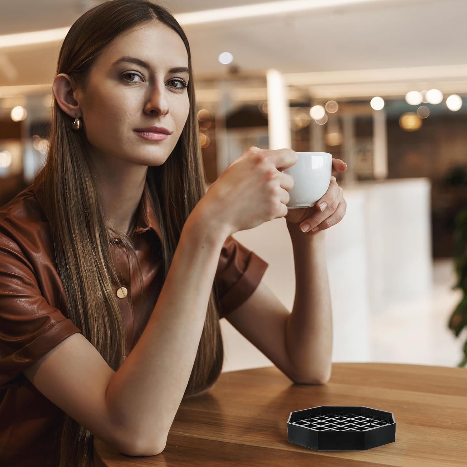 2 Pcs Coffeecountertop Octagon Driptrays, Coffee Drips Tray, 4" Drip Trays, Black Plastic Drips Tray Coaster with Honeycomb Grid for Coffee Station or Kitchen Drink Tea Wine Spill Protection