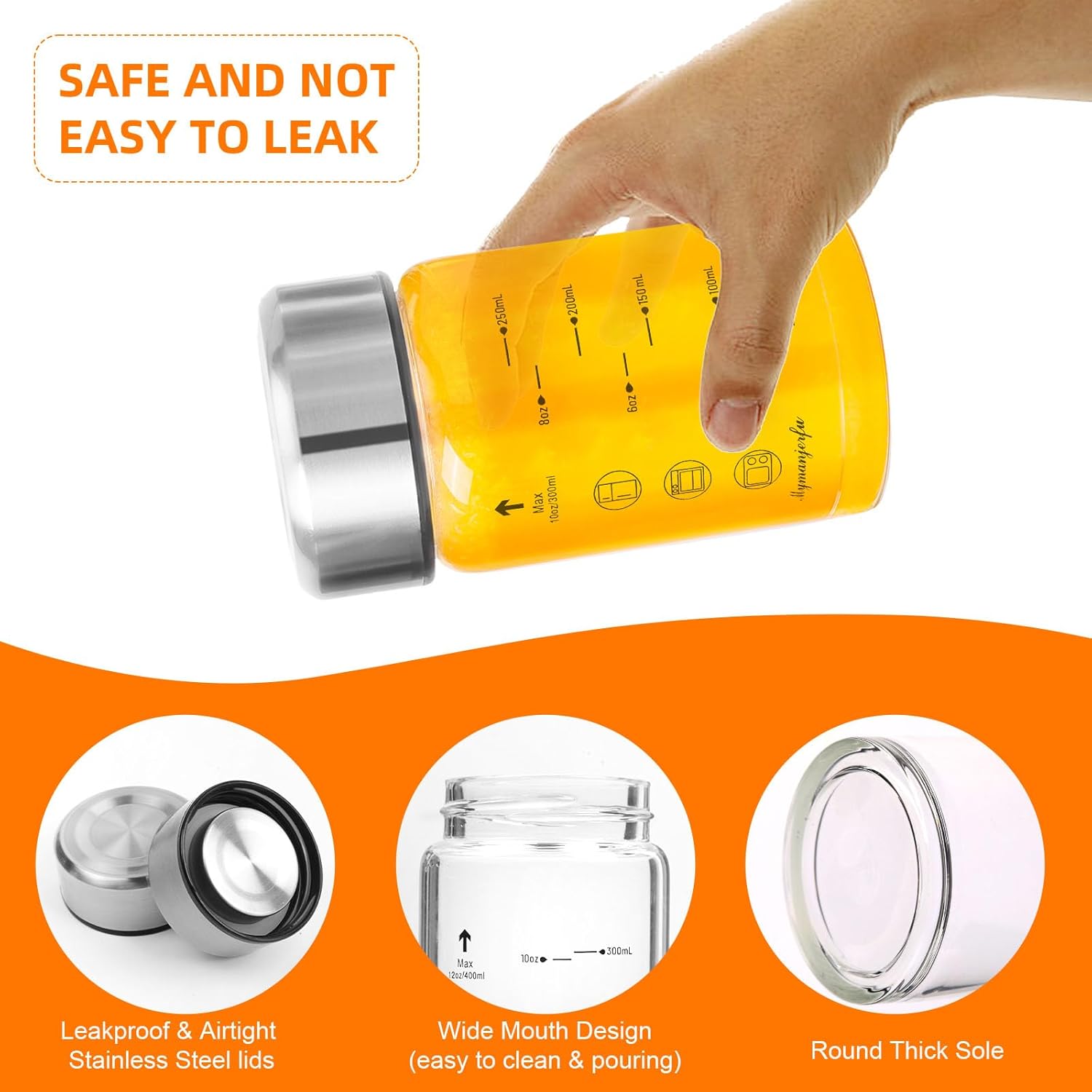 - 5. Embrace the Power of Quality: Made from durable borosilicate glass and featuring leak-proof stainless steel lids, our bottles are built to last. Whether you're sipping on a hot cup of coffee or savoring a cold glass of juice, these bottles deliver unbeatable performance and style. Upgrade your beverage experience with our premium glass juice bottles today!