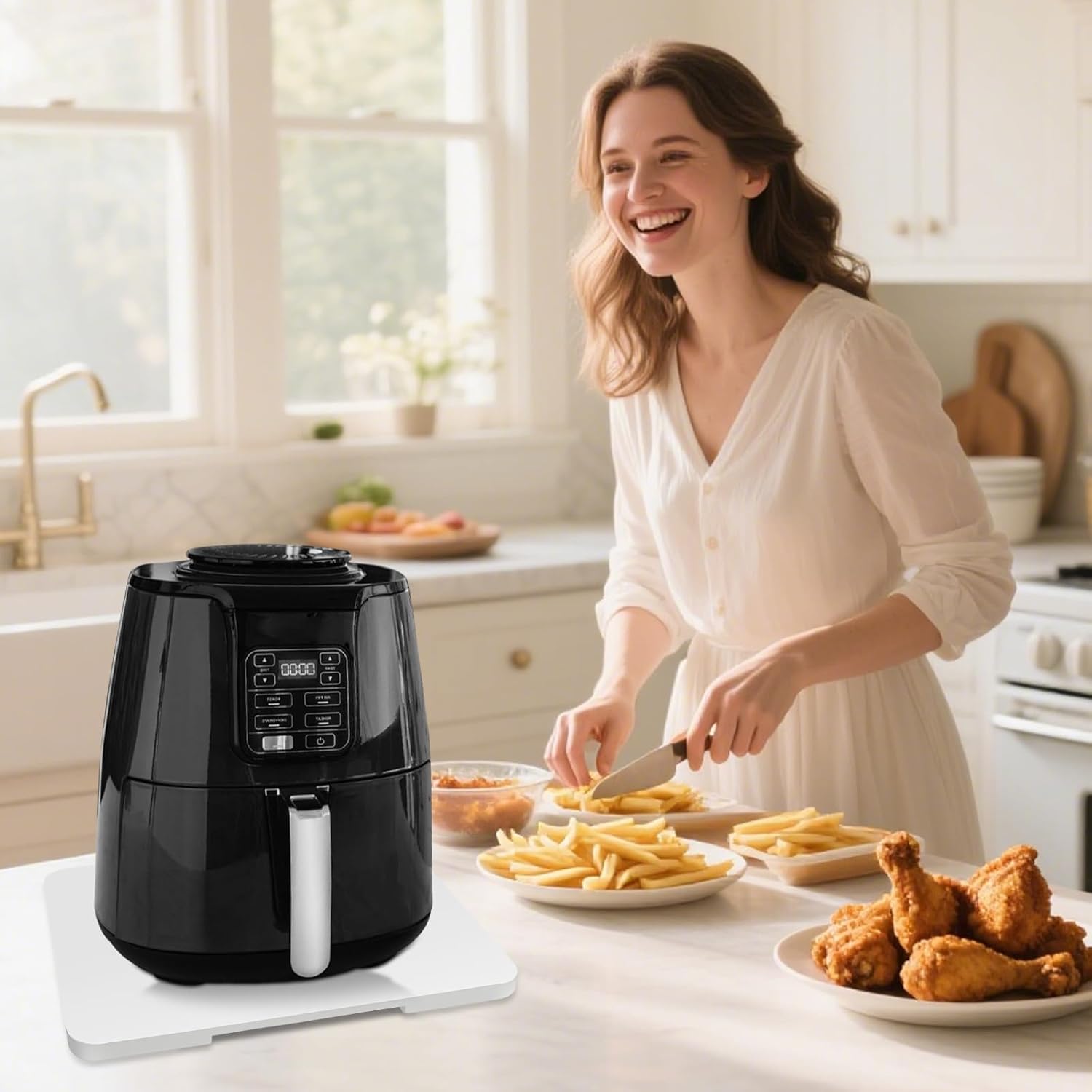 - ELEGANTLY ORGANIZE: With the coffee matt for counter, you can reorganize your kitchen accessories in style without scratching your countertop or kitchen surfaces. Whether you want to easily access your coffeemaker air fryer from under the cabinet, or you need more counter space to prepare a large meal, coffee maker mat for countertops lets you quickly and easily move appliances.