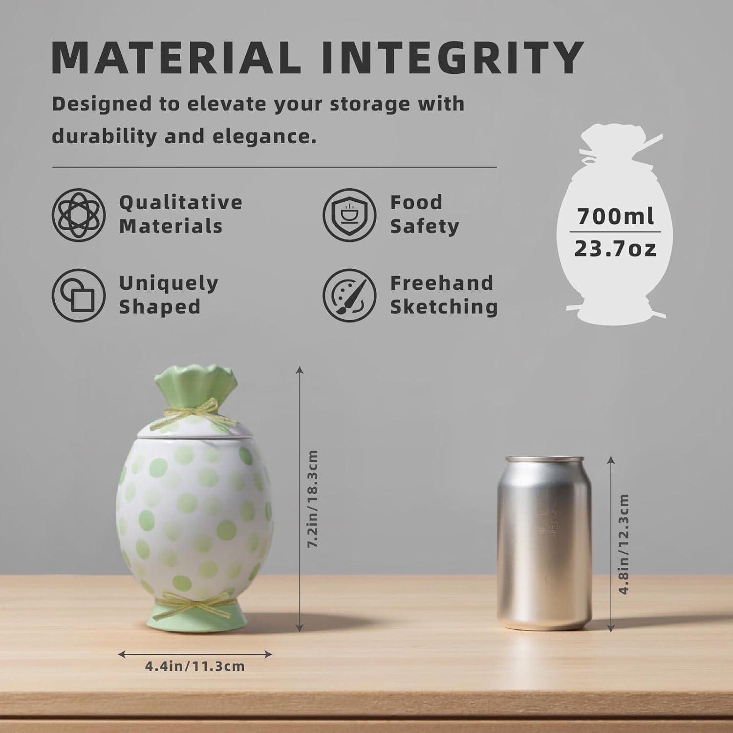 Cute Storage Jars with Airtight Lid, Funny Candy Shape Ceramic Food Container, Cookie Canister for Coffee Bean, Sugar, Tea, Spices, Cereal, Nuts, Dog Treat-700 ml / 23.7 ozz(Green Dots)