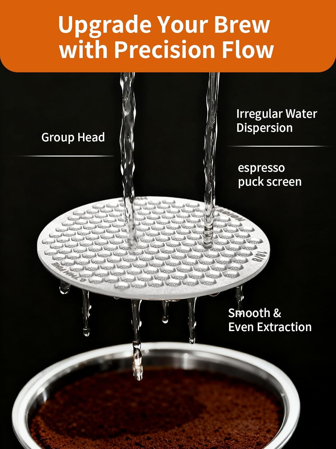 - 【Even Extraction for Better Espresso】Helps water spread evenly across the coffee puck to reduce channeling and support a balanced shot. Fits most 54mm portafilter baskets.