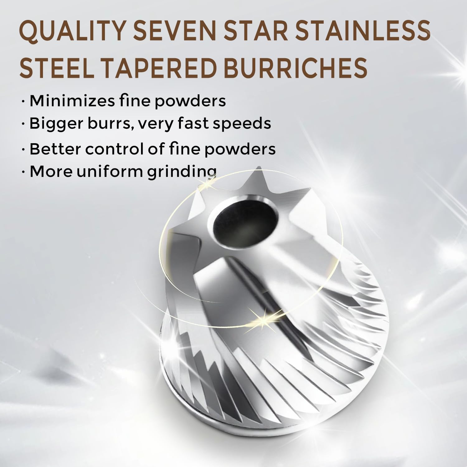 - Upgraded 7-Star Grinding Core: Coffee grinder adopting high hardness SUS420 stainless steel conical blade, 7-star blade structure, realizing 7 layers of cutting, making the grinding more even; Double bearings fix the center shaft, zero wobble and zero offset when grinding. Ensure your coffee beans achieve the best taste through consistent and fast grinding, retaining the flavor of the coffee beans.