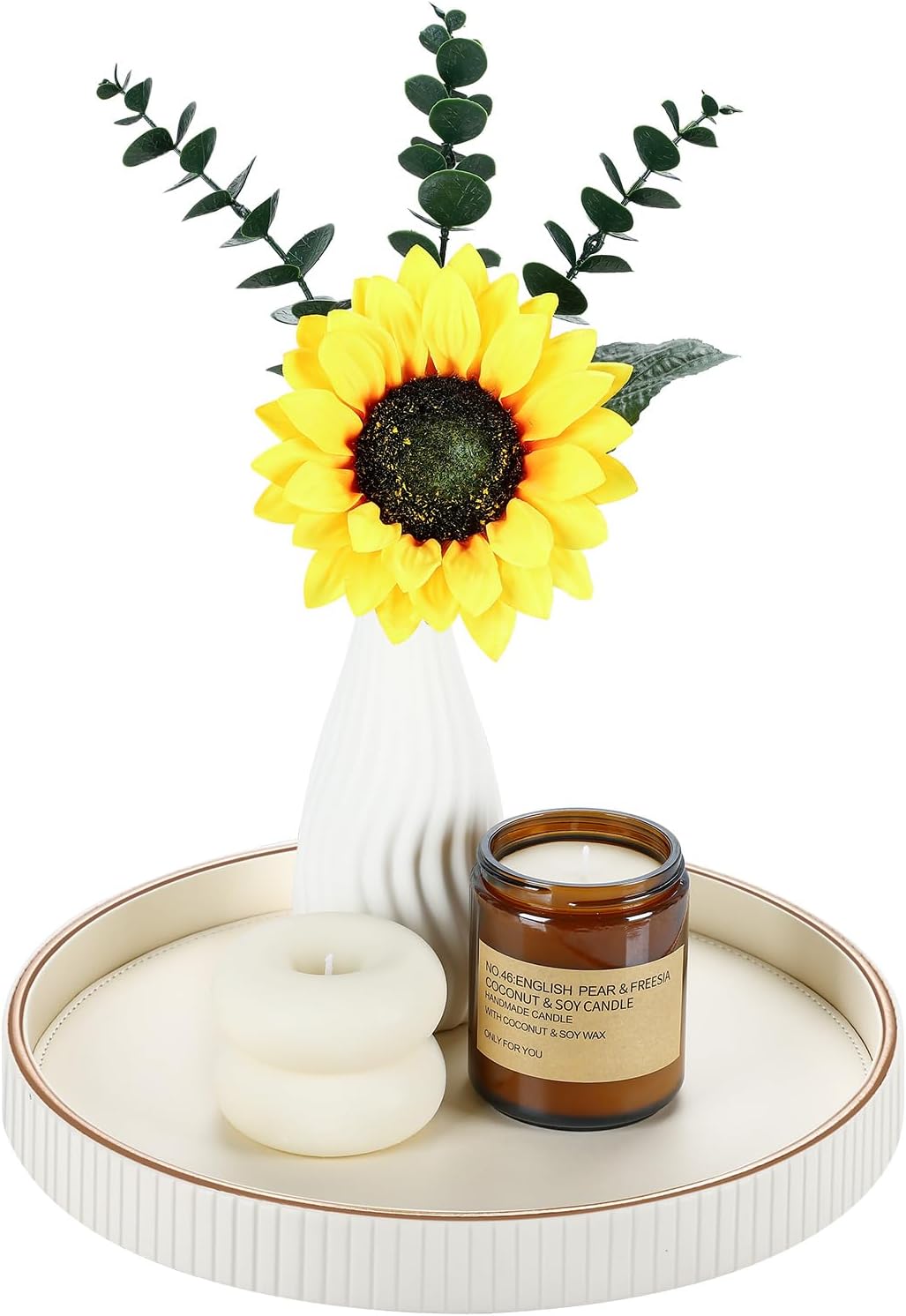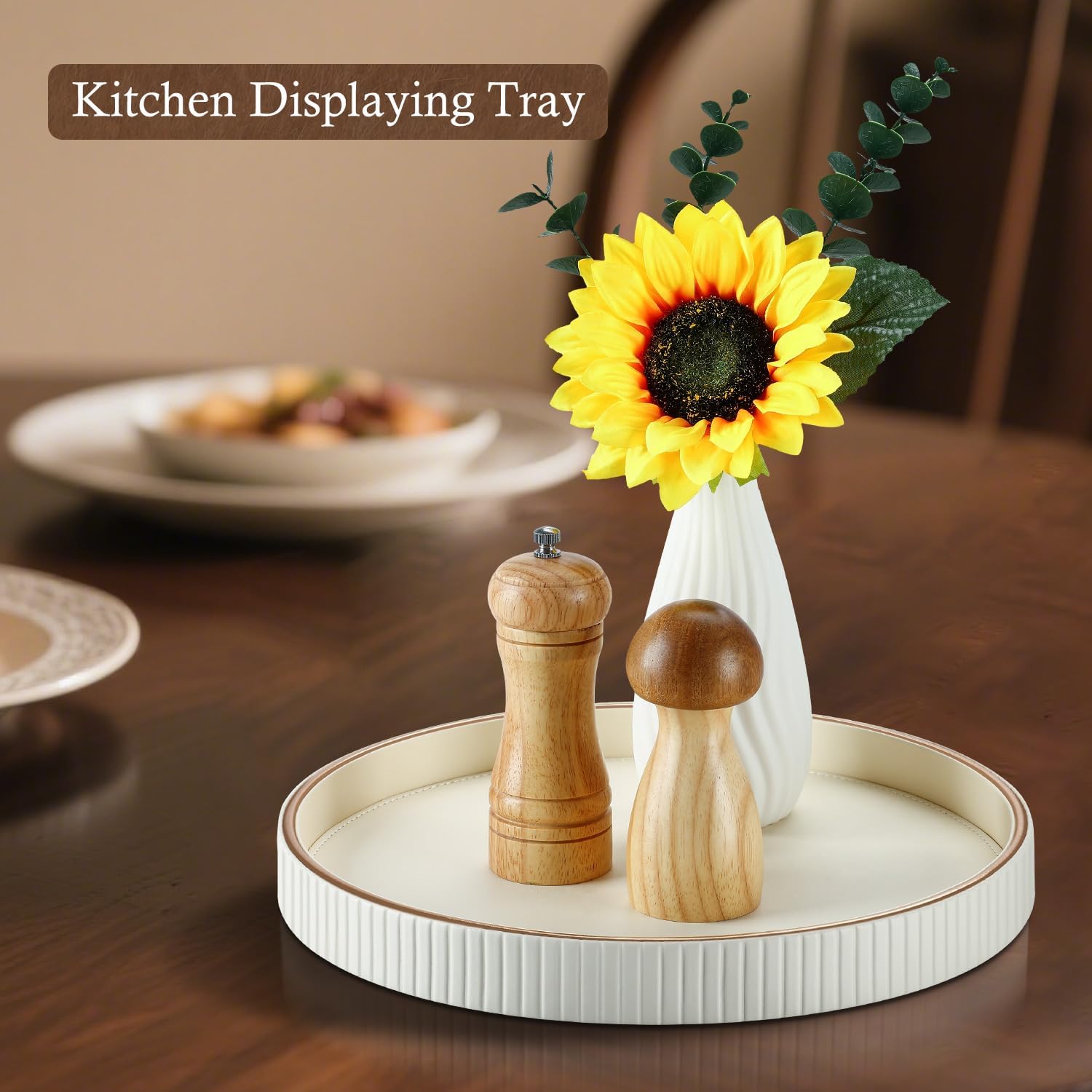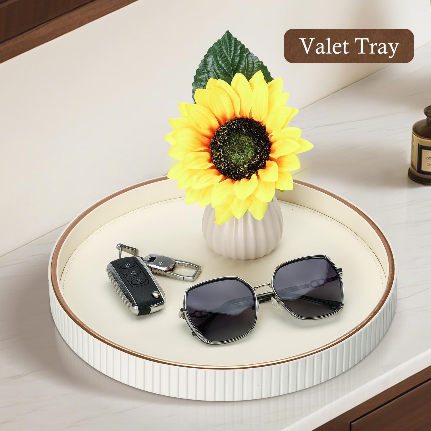 - 【Modern Leather Elegance】 Hand-crafted from premium PU leather with a soft-touch surface, this round decorative tray from GORESE Striped Series brings a refined accent to your home and cleans effortlessly with a simple wipe.