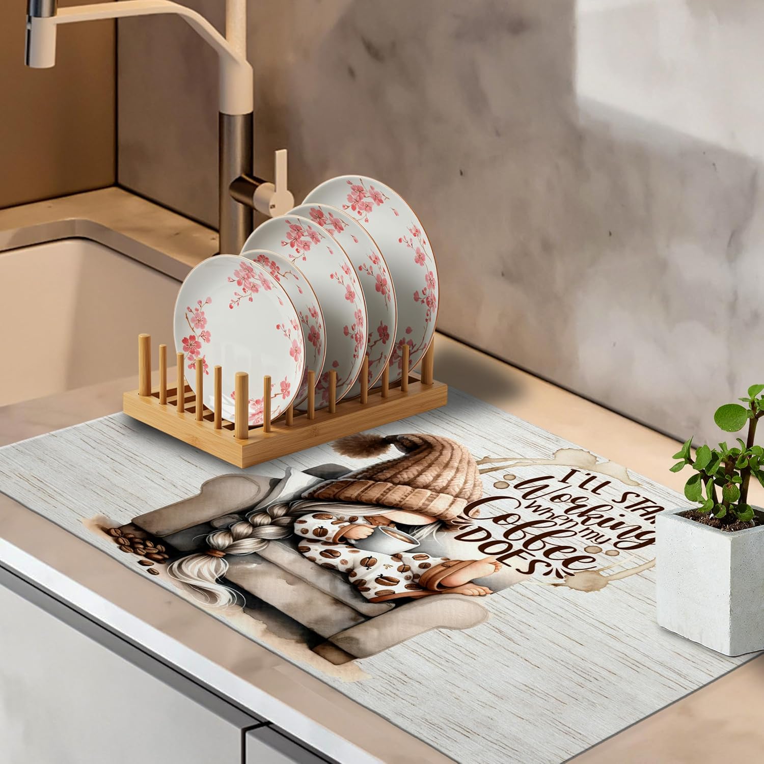 - Multiple Uses & Designs: More than just a drying mat, this piece works well as a coffee bar liner, pet bowl mat, or under small appliances. Available in various printed patterns, it's a practical and decorative addition to kitchens, dining areas, or home cafés.