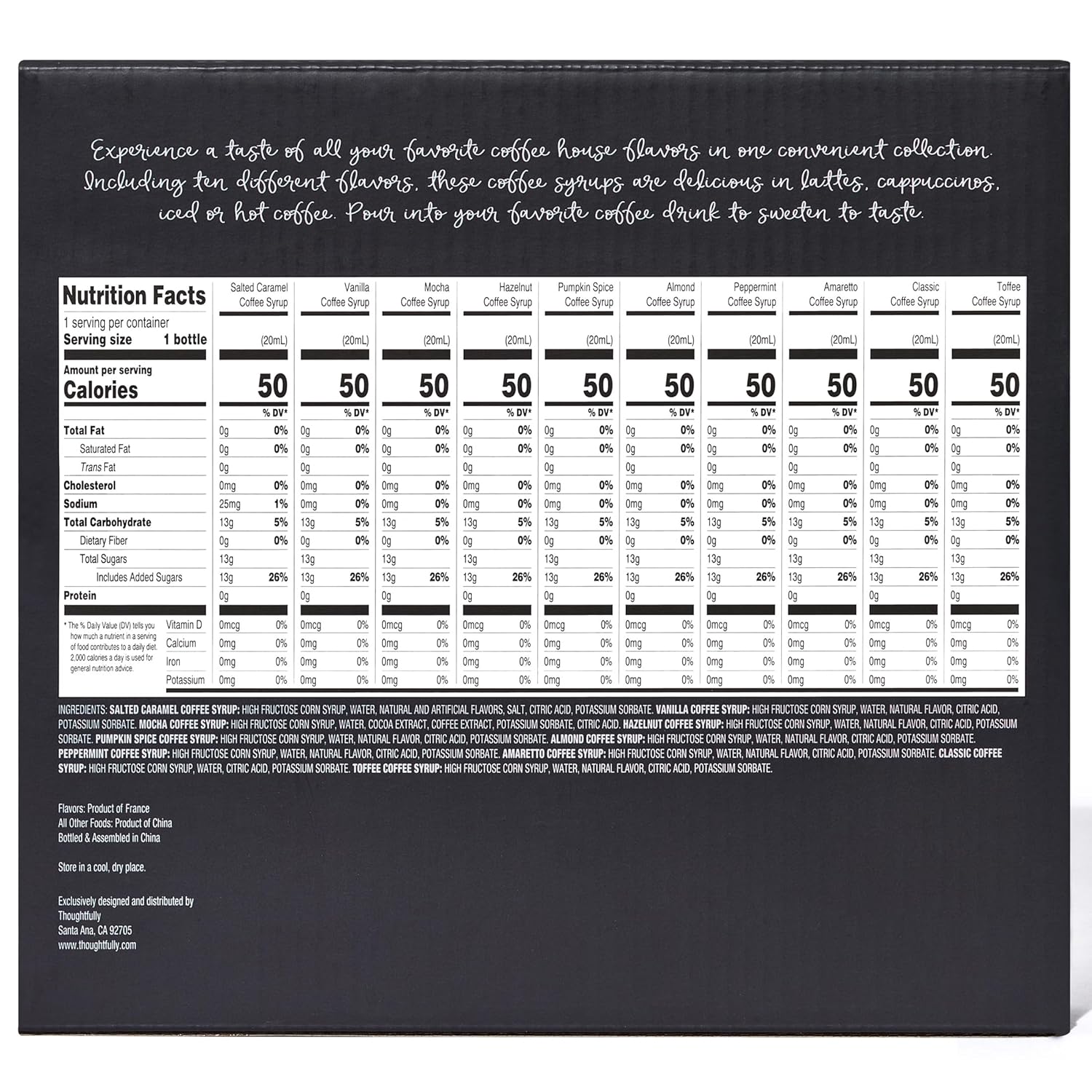 Thoughtfully Gourmet, Coffee Syrup Sampler Gift Set, Syrup Flavors Include Salted Caramel, Vanilla, Mocha, Hazelnut, Pumpkin Spice, & More, Set of 10