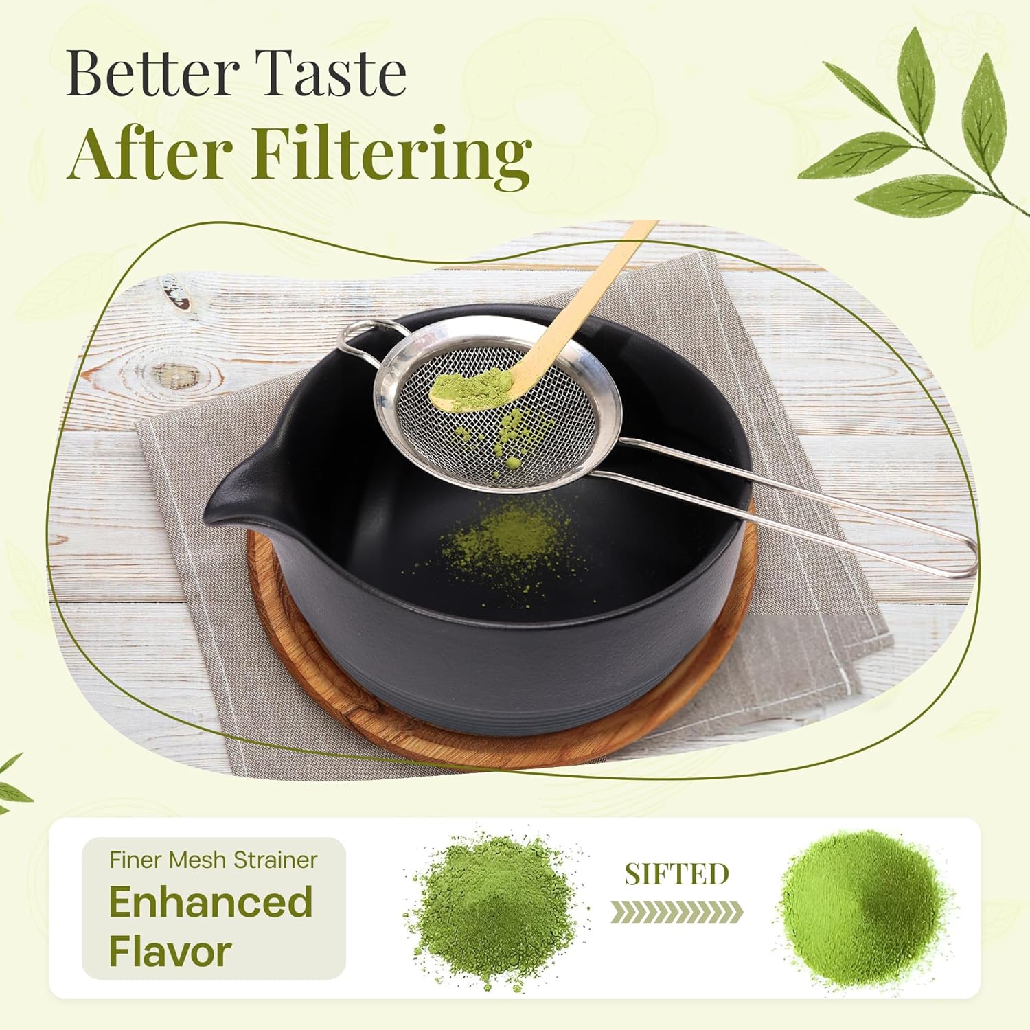 - 【All-in-One Matcha Ceremony Kit】 Our premium 8-piece matcha kit is designed to meet every need, includs 1 matcha bowl,1matcha whisk set,1 matcha whisk holder,1matcha sifter, 2 matcha spoon,1matcha spoon holder,1Tea cloth from preparation to clean-up, all while showcasing elegant packaging that enhances the ceremonial feel. Whether gifting a loved one or treating yourself, this meticulously crafted set guarantees to impress with its high quality and graceful design. Complete with every tool you need.